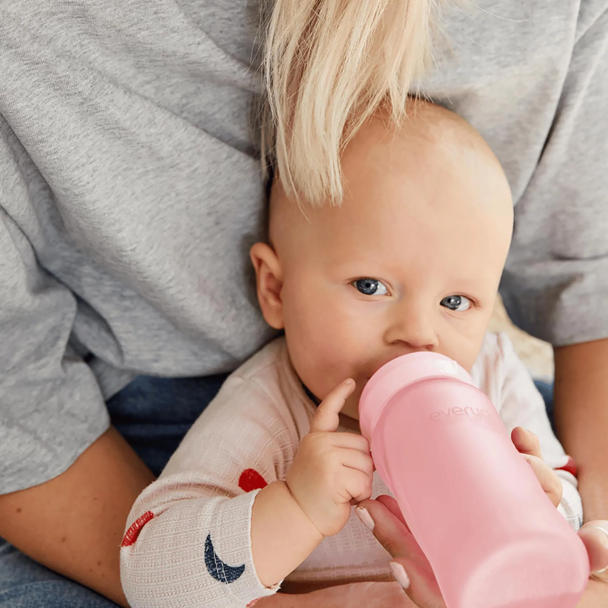 Mit dieser Glas-Babyflasche Healthy+ von everyday baby bist du bestens ausgerüstet, um den gleichmäßigen Trinkfluss des natürlichen Stillens nachzuahmen. Der Anti-Kolik-Trinksauger aus medizinischem Silikon erleichtert deinem Baby zudem den Wechsel zwischen Brust und Flasche.