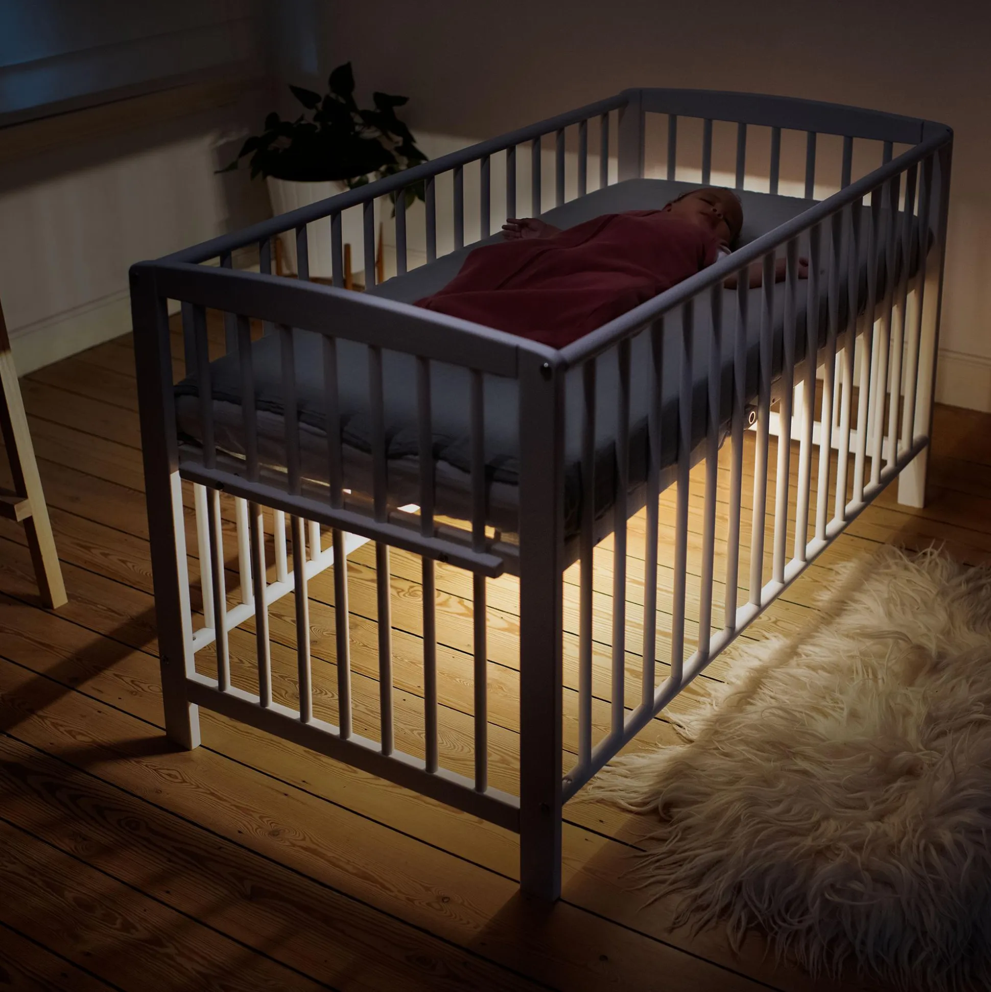Die Maxi-Cosi Glow Unterbettbeleuchtung gibt dir die beruhigende Gewissheit, dass dein Baby ungestört weiterschlafen kann, wenn du tagsüber oder nachts nach ihm schaust. Ein intelligenter Bewegungsmelder schaltet sanftes Licht ein, wenn du dich dem Kinderbett näherst und dimmt automatisch zurück, wenn du das Kinderzimmer verlässt; so musst du nie das große Licht einschalten und riskieren, dein Baby zu wecken. Über die Connected Home-App kannst du die Einstellungen personalisieren, um Entfernung, Timer, Zeitpläne, Lichtfarbe und Helligkeit zu steuern.