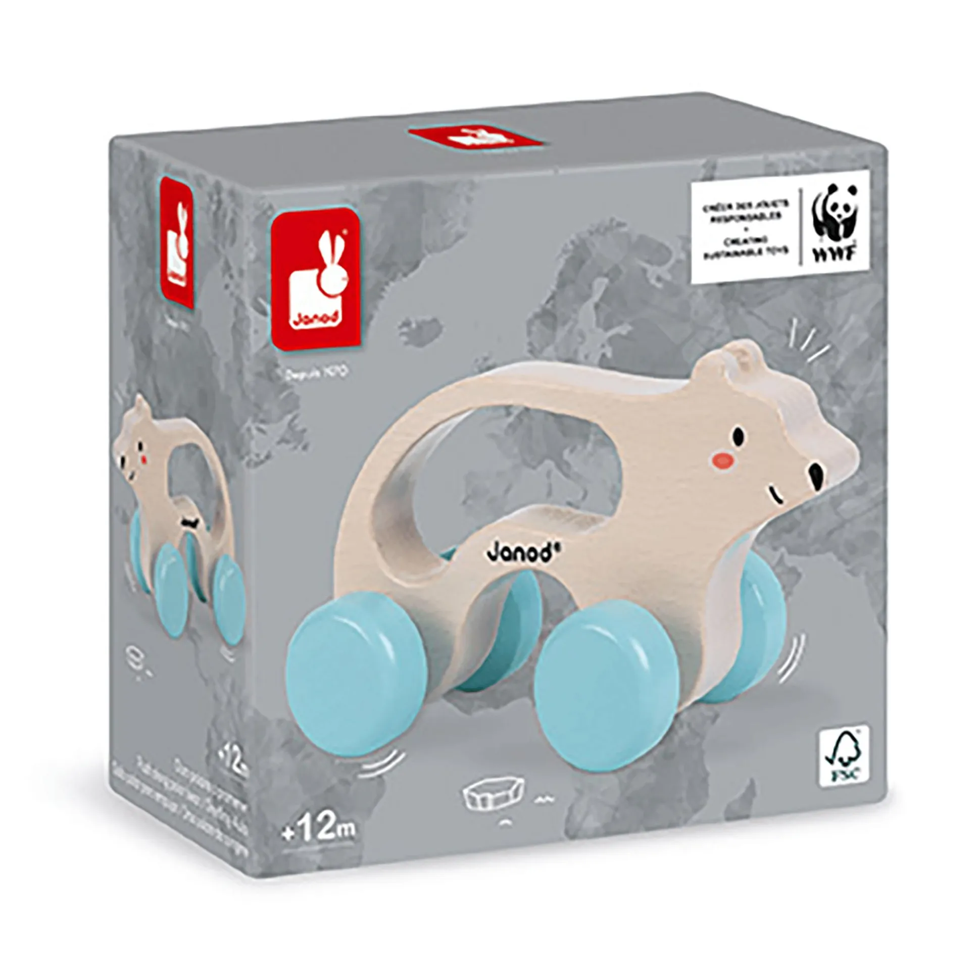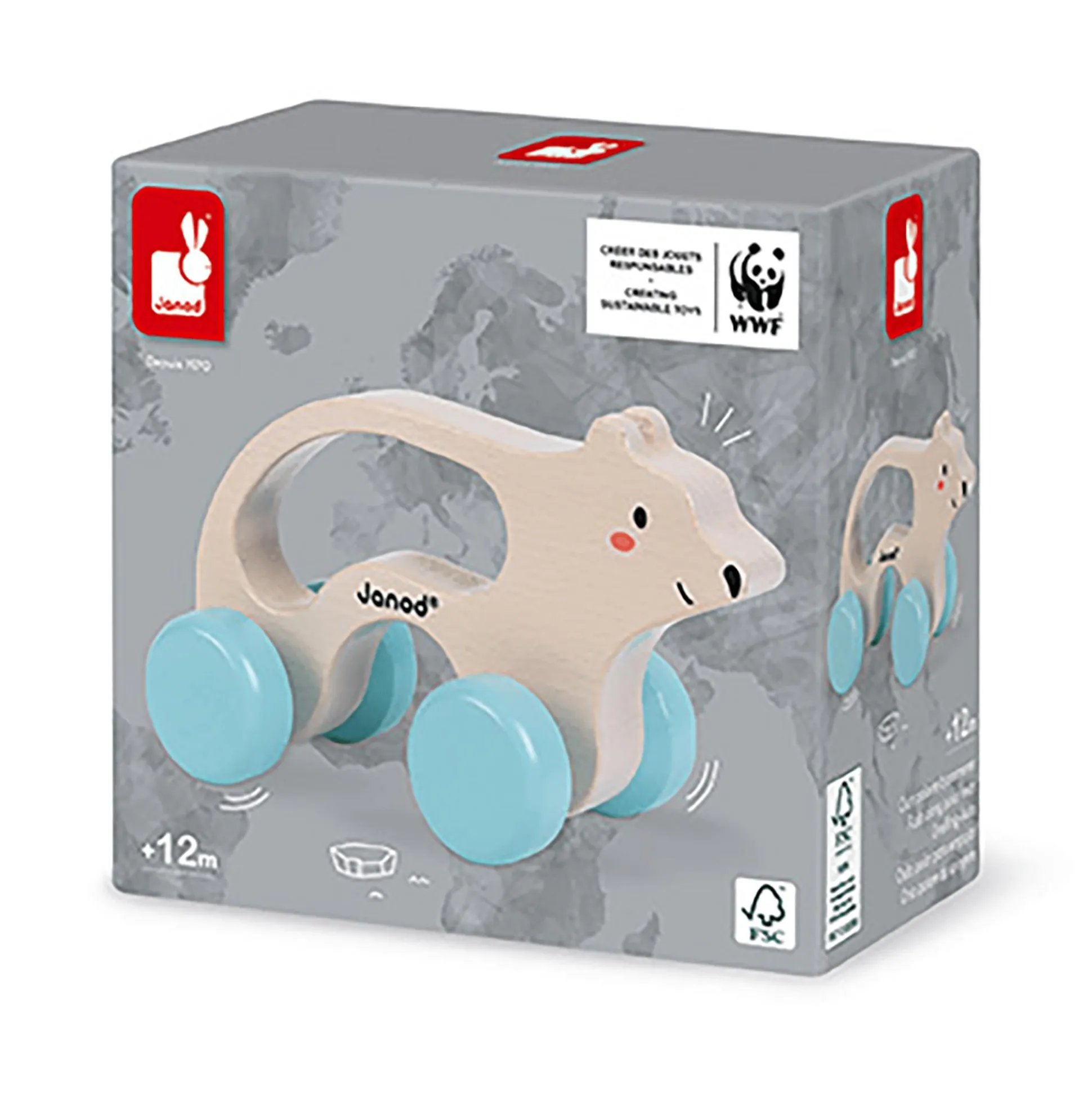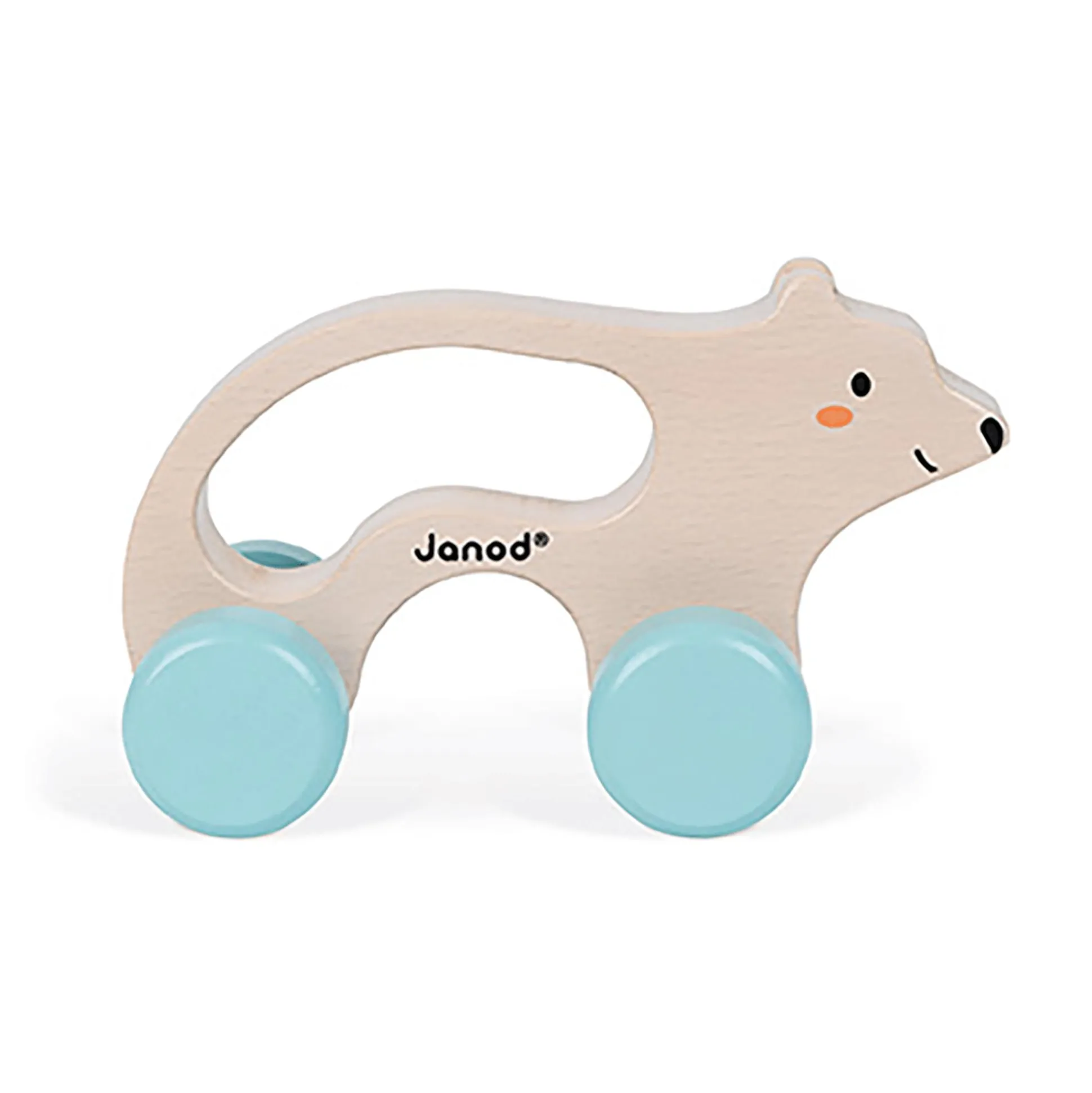 Mit diesem niedlichen Greifling auf Rädern von Janod hat dein kleiner Liebling immer einen treuen Begleiter an seiner Seite! Der süße Eisbär hat einen bequemen und ergonomischen Griff, sodass dein Kind ihn prima mit den Händchen greifen und schieben kann. So wird nicht nur die Motorik, sondern auch die Fantasie gefördert. Das Aktivitätsspielzeug besteht aus FSC-zertifiziertem Massivholz und lässt sich dank seiner kompakten Größe auch prima unterwegs mitnehmen.