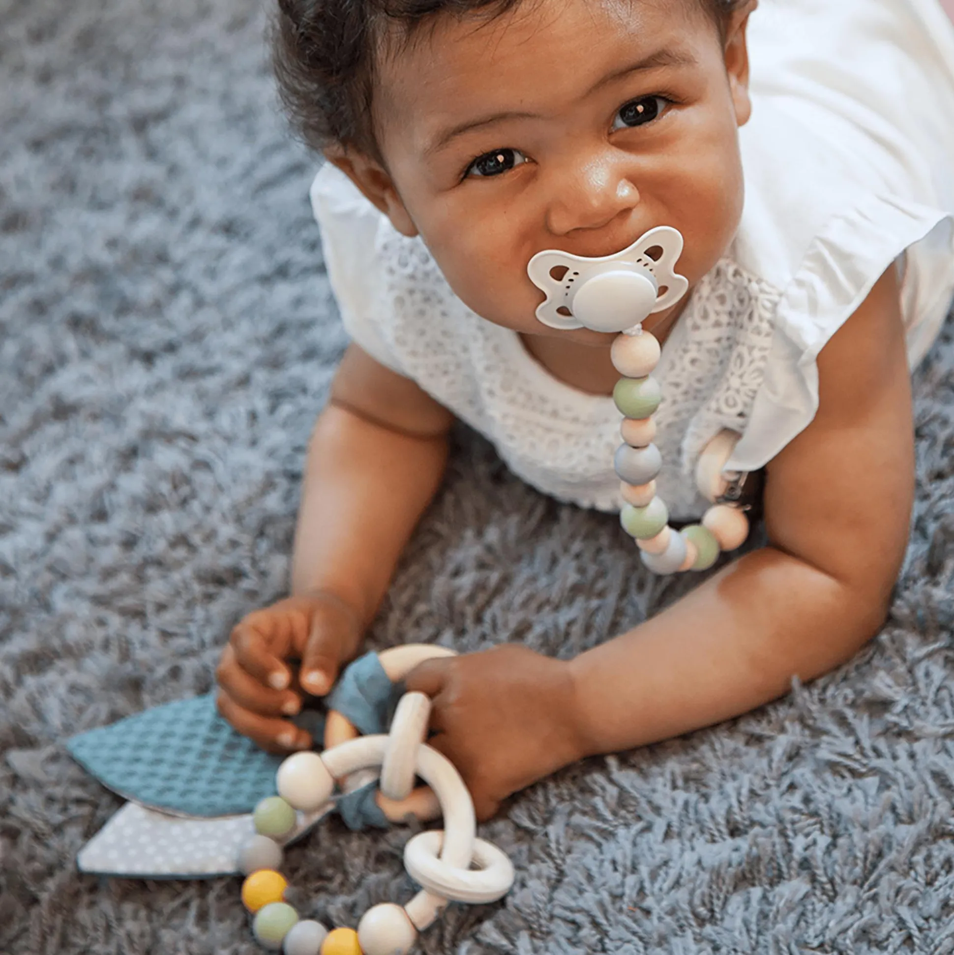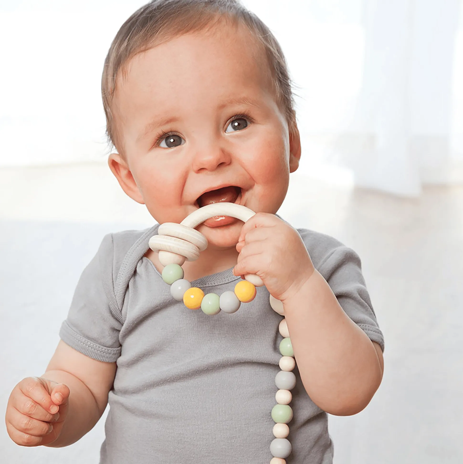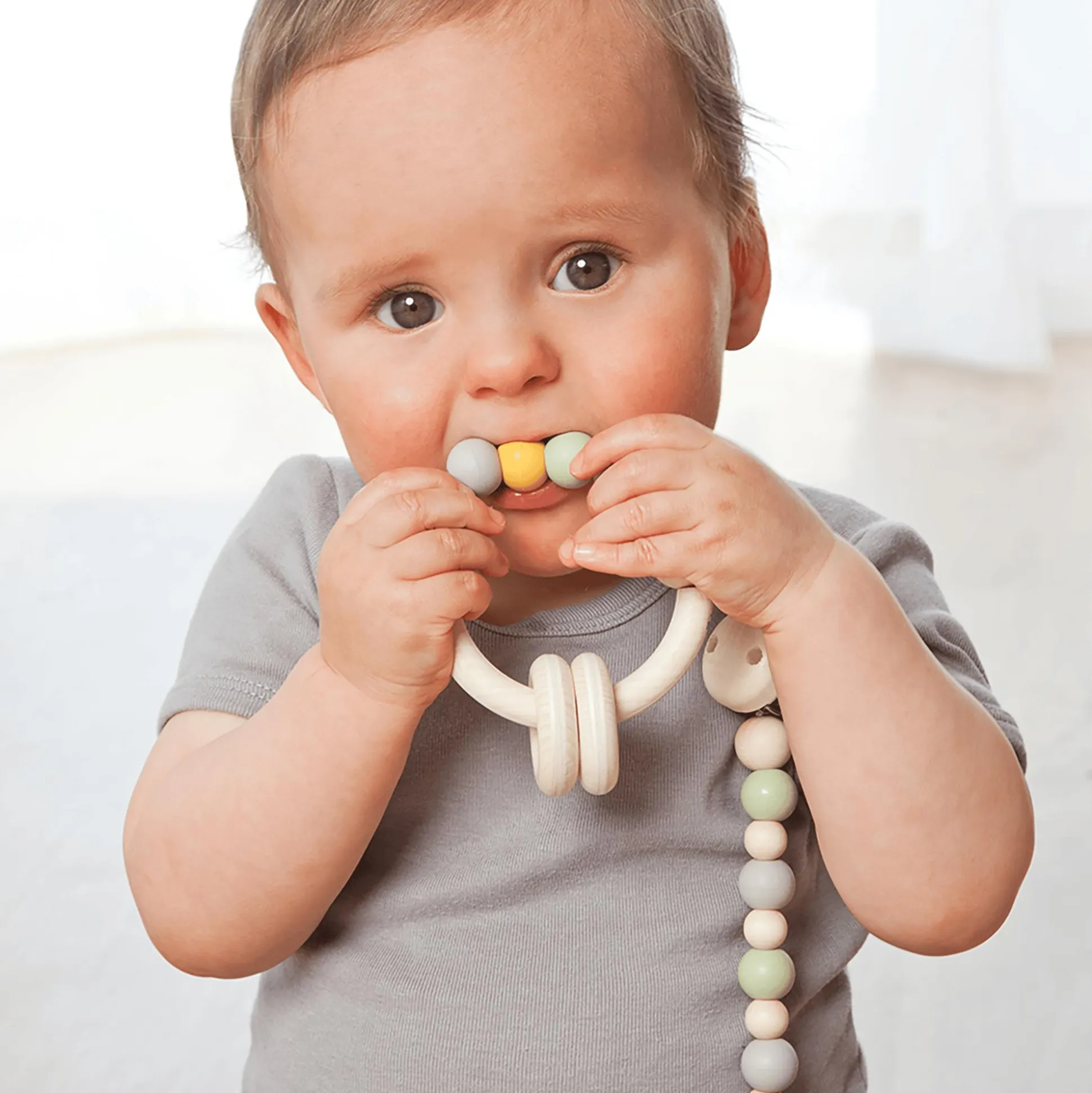 Der niedliche Greifring mit Kautschuk- und Holzperlen von Grünspecht ist das ideale Spielzeug für dein Baby! Er fördert die Feinmotorik und den Tastsinn, während die weichen Kautschukperlen beim Zahnen Linderung bieten. Dein Nachwuchs kann ihn einfach greifen und da er frei von BPA und Phthalaten und in Deutschland aus Naturkautschuk und Ahornholz hergestellt wurde, ist er hochwertig und sicher.