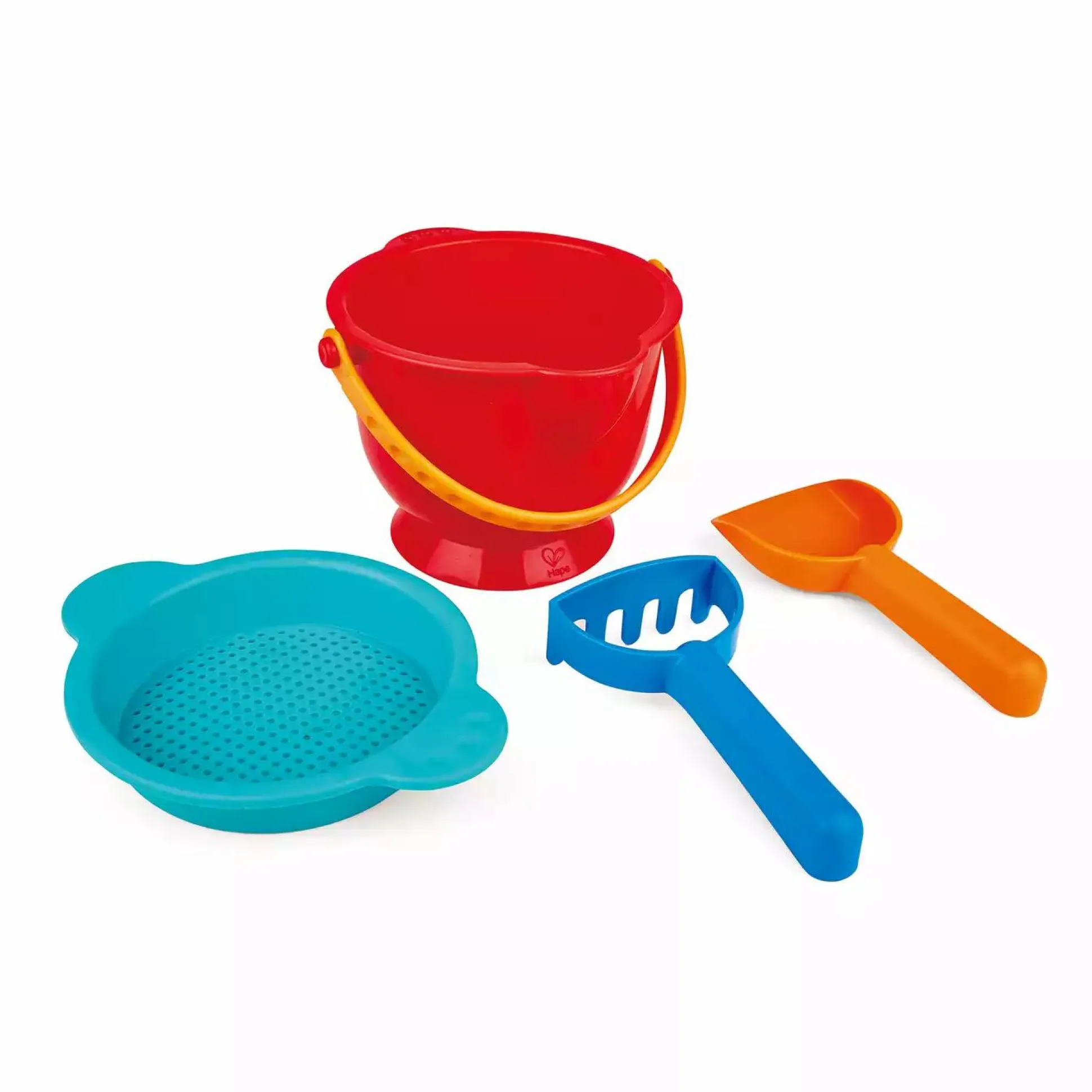 Mit der Grundauststattung Strandspielzeug von Hape hat dein Kleines alles, was es braucht. Eimer, Schaufel, Rechen und ein Sieb garantieren einen perfekten Tag am Strand.