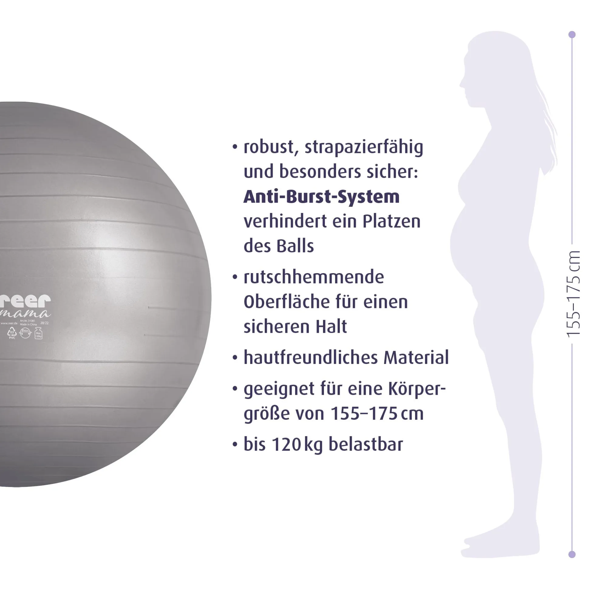 Auch während der Schwangerschaft ist ausreichend Bewegung wichtig. Nicht nur um sich fit zu halten, sondern auch um sich bestmöglich auf die anstehende Geburt vorzubereiten. Der reer Mama Gymnastikball ist ein vielseitiges und effektives Hilfsmittel, welches du während der Schwangerschaft und auch in der Zeit danach bedenkenfrei nutzen kannst. Mit seinem Durchmesser von ca. 65 cm ist der Gymnastikball dabei für alle Menschen mit einer Körpergröße zwischen 155 cm und 175 cm geeignet.