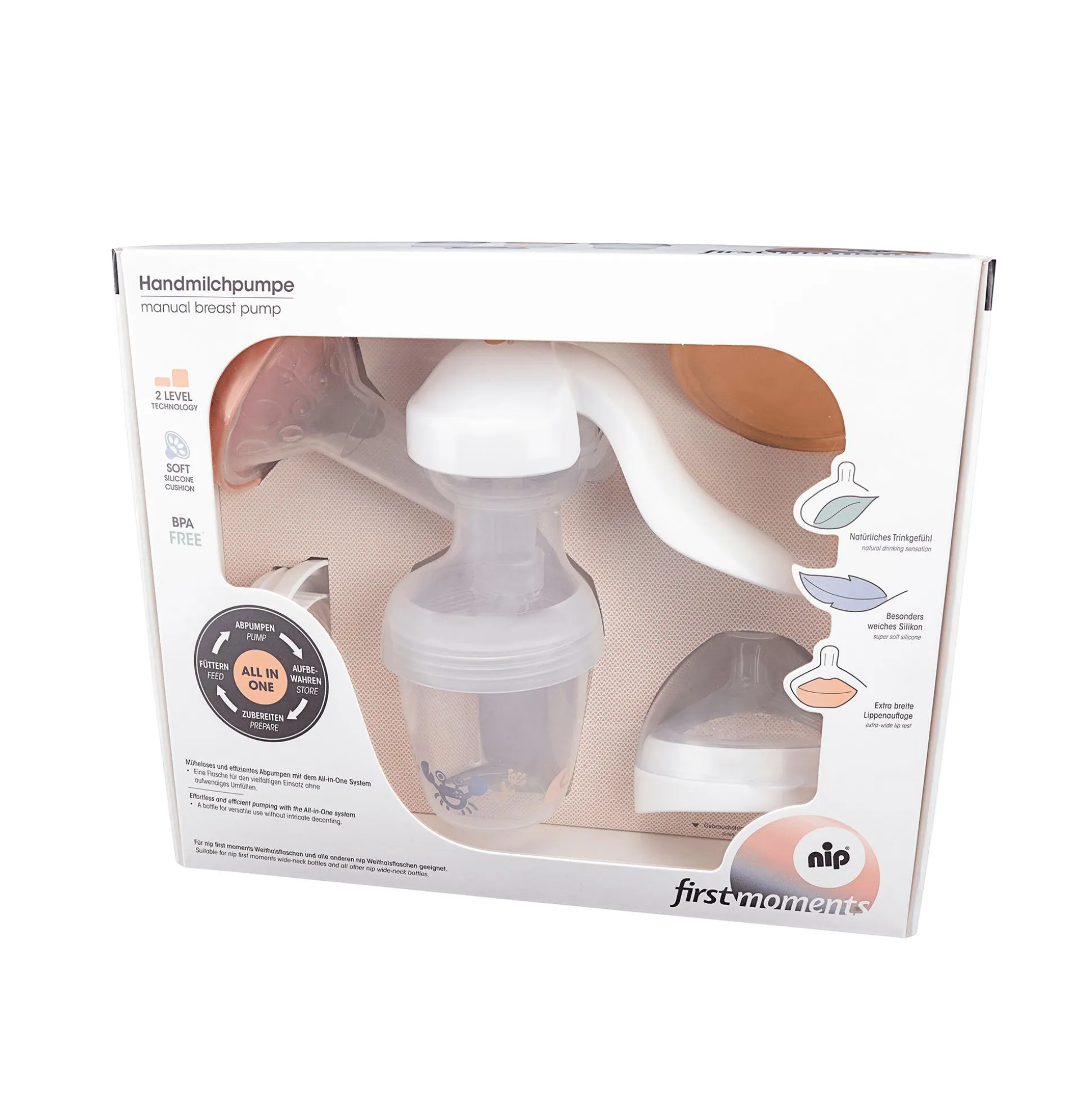 Mit der manuellen Handmilchpumpe First Moments von nip gelingt das Abpumpen flexibel und unkompliziert.