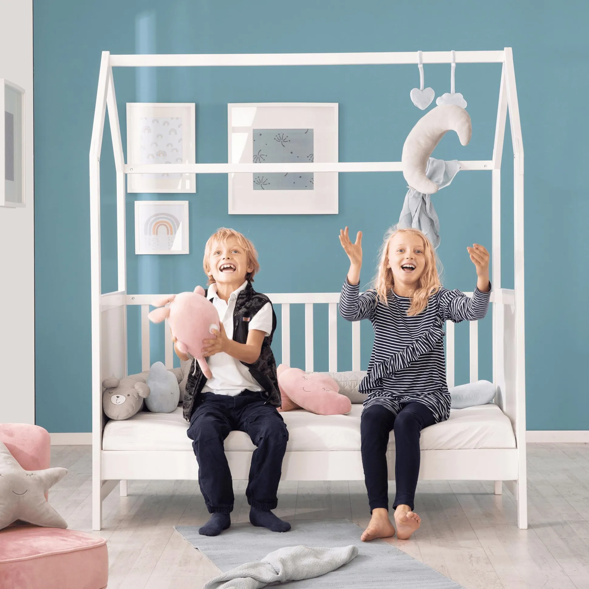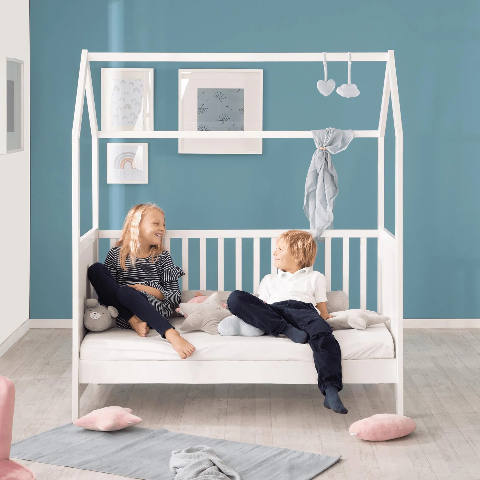 Das wunderschöne und vielseitige Hausbett Weiß von roba kreiert eine erholsame Schlafumgebung für deinen kleinen Liebling. Es kann schon ab der Geburt und mit den separat erhältlichen Umbauseiten (Nr. 56625050) als Juniorbett oder Kuschelsofa bis zu einem Alter von ca. 8 Jahren genutzt werden.