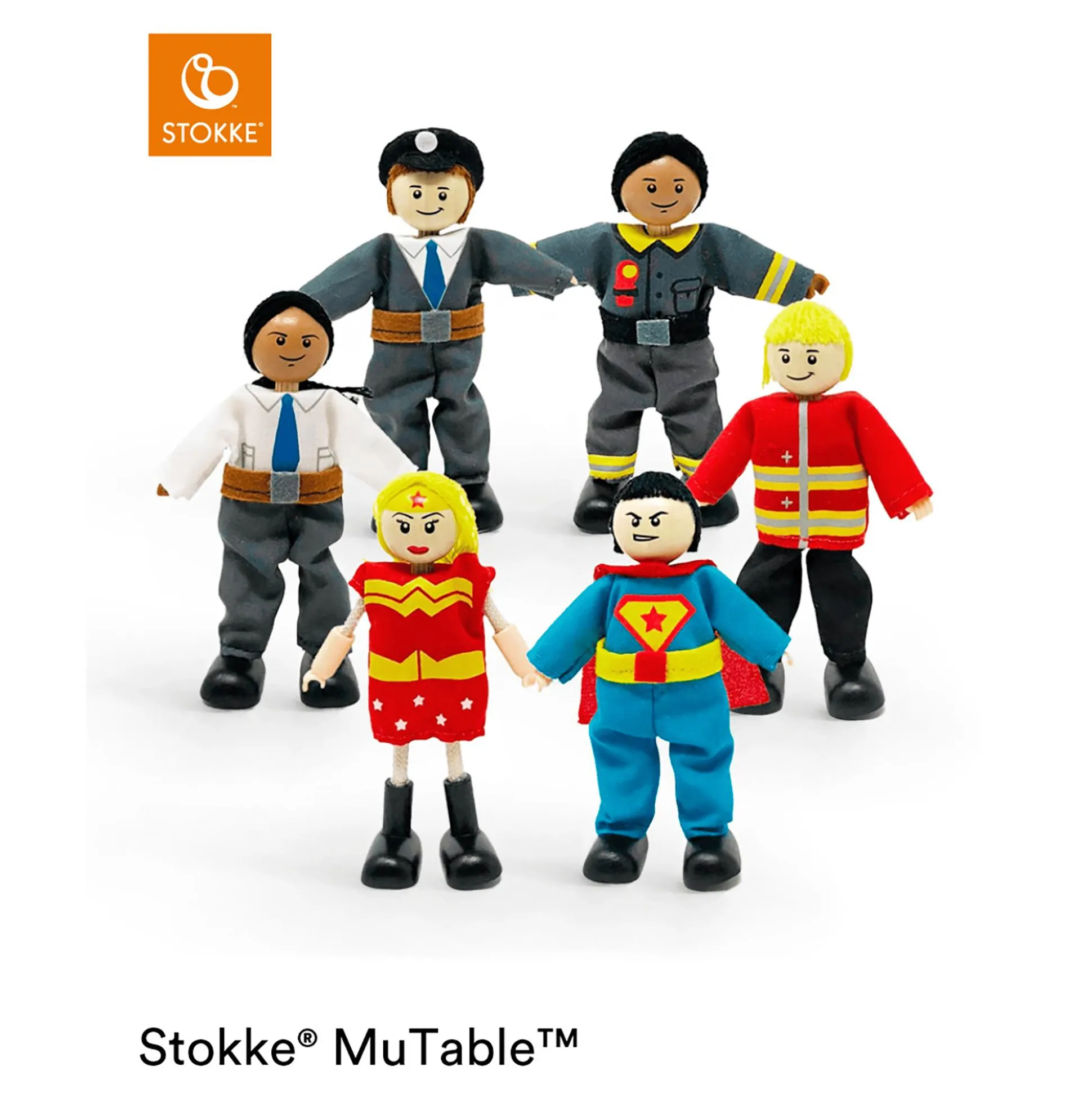 Das Held*innen-Set V1 von Stokke ist perfekt passend zum MuTable™ Haus der Held*innen. Diese bezaubernden Holzfiguren, mit liebevoll gestalteter Baumwollbekleidung von Hape Toys, sind mehr als nur Spielzeug – sie sind der Schlüssel zu einer Welt voller Kreativität und Fantasie für Klein- und Schulkinder.
