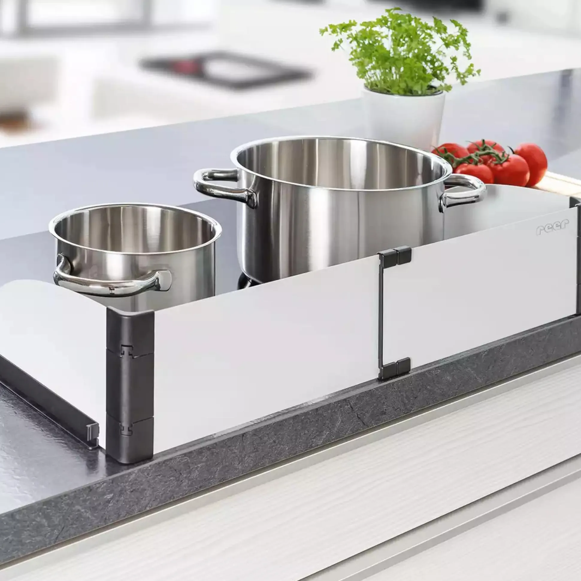 Ob Elektro-, Gas- oder Induktionsherd: das Schutzgitter eignet sich für jede Herd-Art. Durch seine verstellbare Breite im Bereich von ca. 55 – 61 cm kann das Herdschutzgitter stufenlos an die Größe deiner Kochfläche angepasst werden. Mit Spezialklebeband werden die Halteleisten für den Herdschutz direkt auf der Küchenplatte angebracht, sodass er unabhängig von Oberflächenmaterial und Plattenstärken auf jeder Arbeitsplatte komfortabel befestigt werden kann.