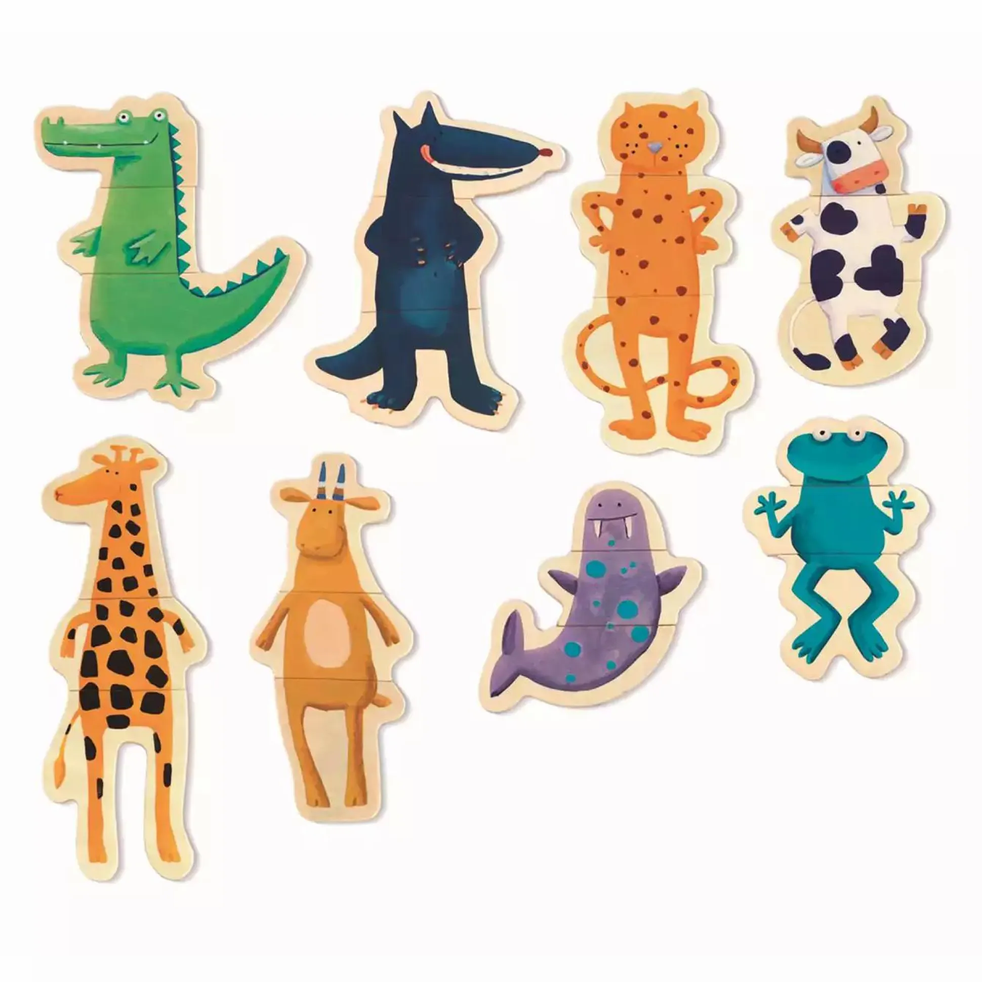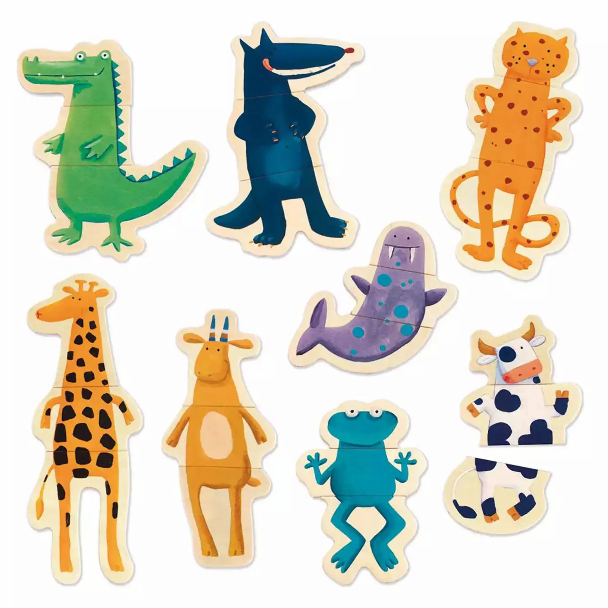 Mit den Magneten Crazy von DJECO kannst du die Kreativität deines Kindes fördern. Das Spiel besteht aus insgesamt 24 Teilen aus Holz. Die einzelnen Teile können in beliebiger Reihenfolge zusammengesetzt werden, so dass lustige und fantasievolle Tiergebilde entstehen. Durch ihre magnetische Rückseite haften die Puzzleteile an glatten Metallflächen.