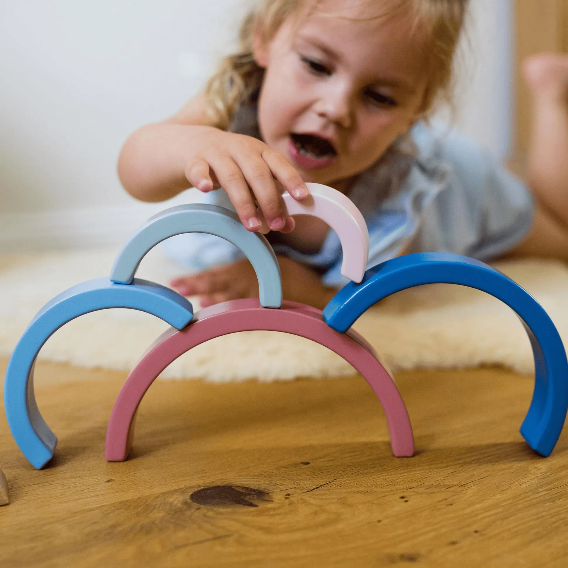 - der hochwertige Holz-Regenbogen sorgt für langlebigen Spielspaß – auch noch für Geschwisterkinder