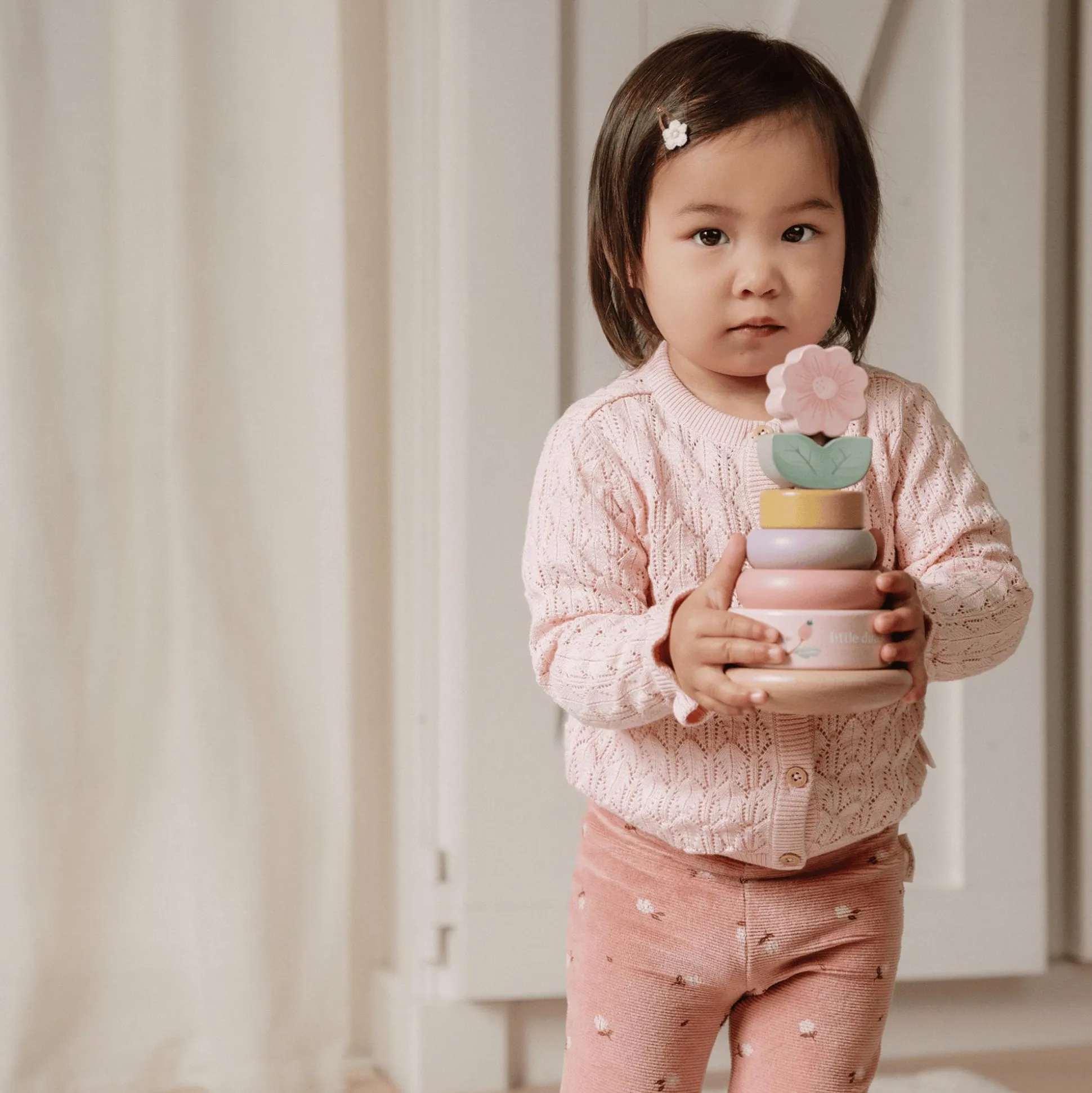 Der Holz-Stapelturm mit Ringen von Little Dutch ist ein bezauberndes Spielzeug aus der Fairy Garden-Kollektion, das Kinderherzen höher schlagen lässt.