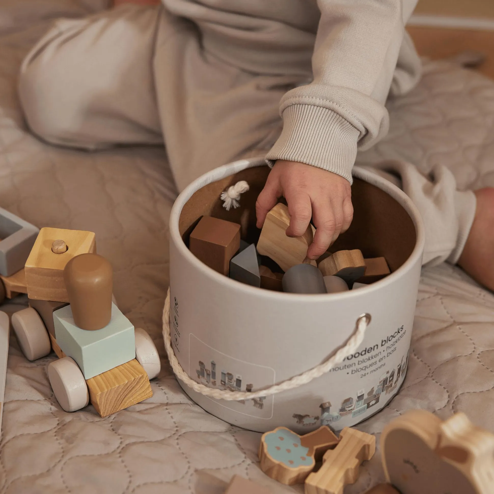 Was willst du bauen? Dieses schöne Würfel-Set enthält 34 Holzbausteine in verschiedenen Formen und Farben. Das Set enthält auch Tiere. Bei all den verschiedenen Stapelmöglichkeiten kann dein Kind seiner Fantasie freien Lauf lassen. Baust du einen Streichelzoo, einen hohen Turm oder ein Haus? Mit diesem lustigen Spiel-Würfel sind die Möglichkeiten unbegrenzt. Für großen Spielspaß, zusammen oder auch alleine. Die Bausteine werden in einer schönen Box geliefert und sind damit auch toll zum Verschenken!