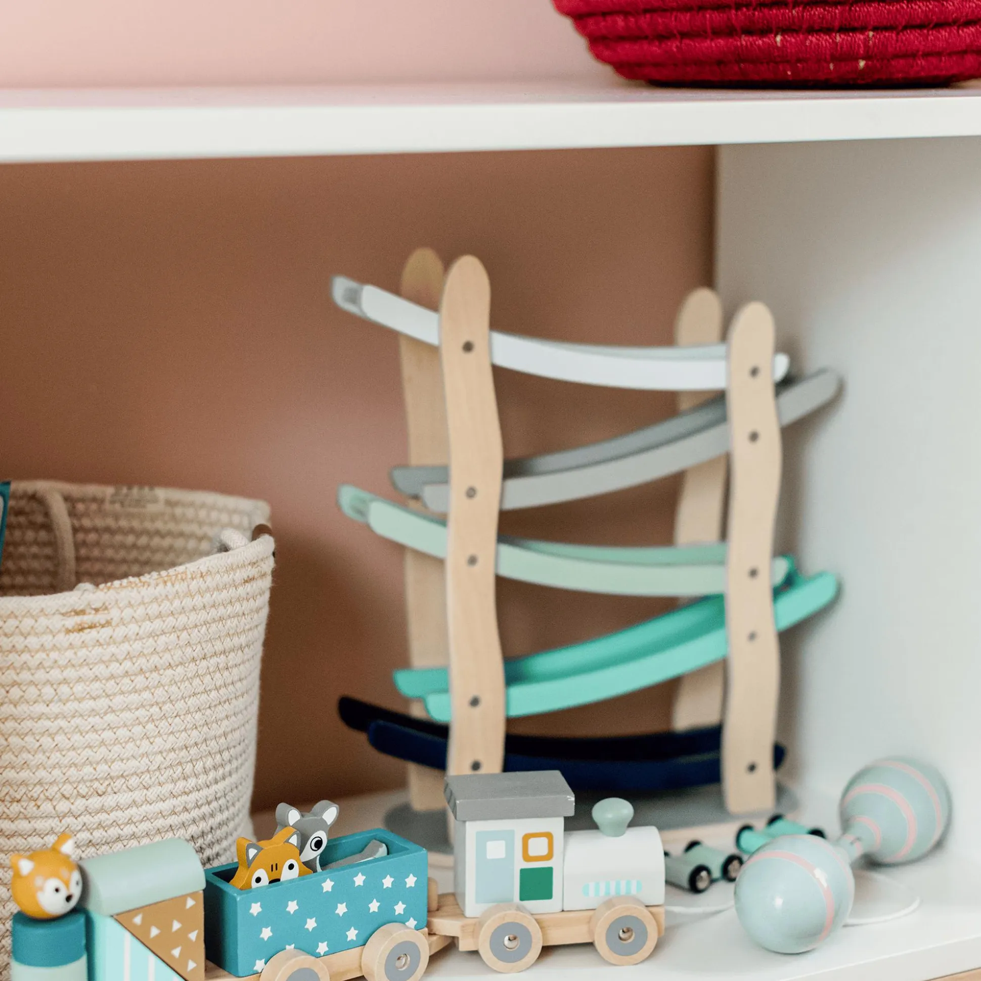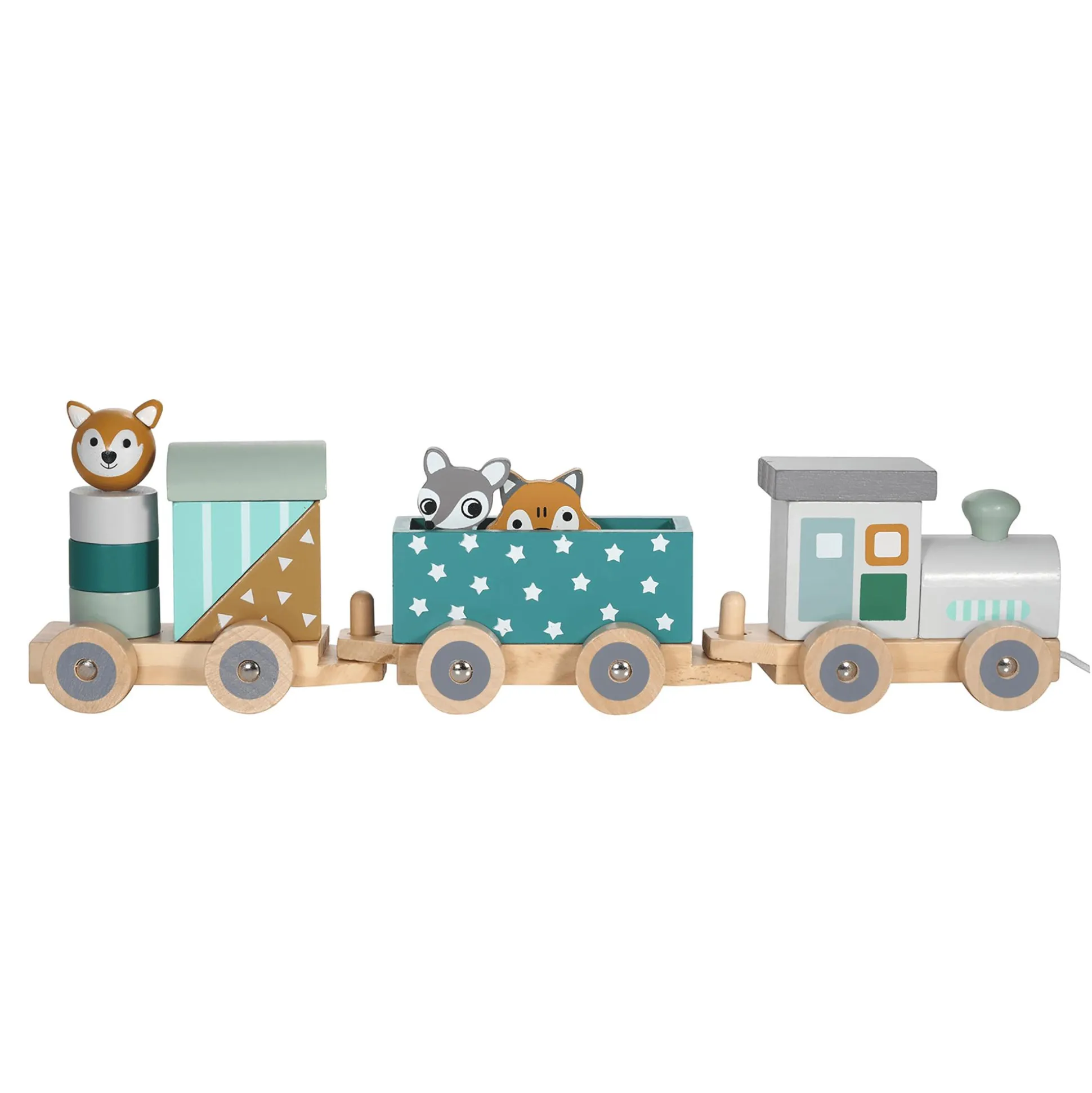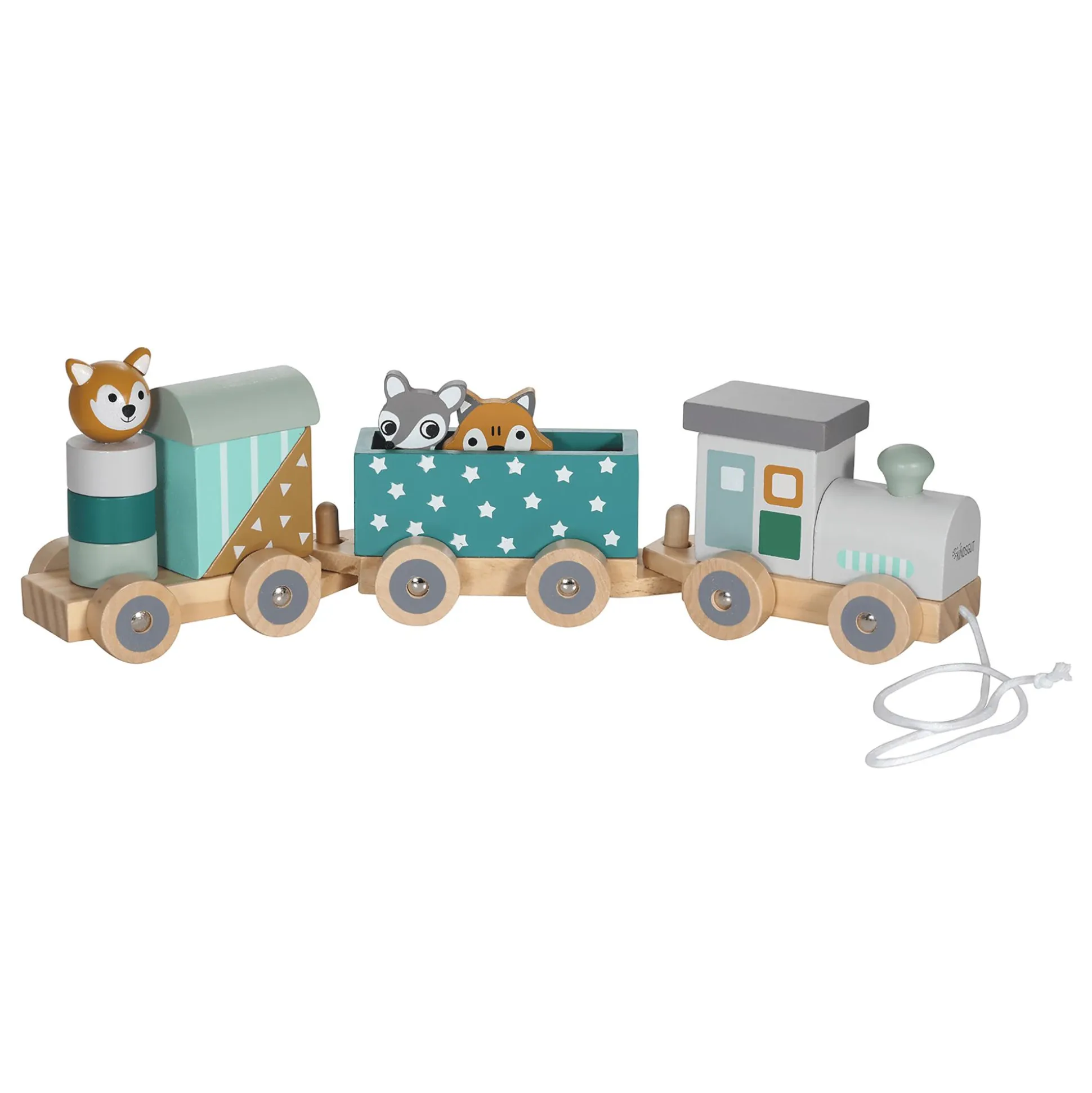 Die dezenten Farben und niedlichen Tiere machen die Holzeisenbahn zum Hingucker im Kinder- oder Wohnzimmer und sorgen für Spielspaß bei Groß & Klein.