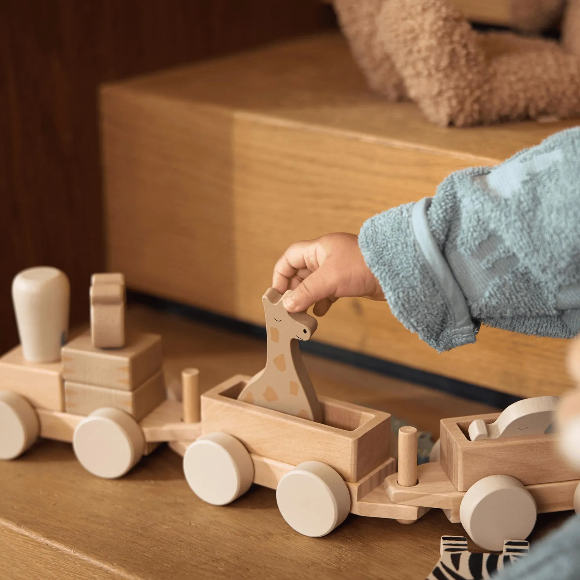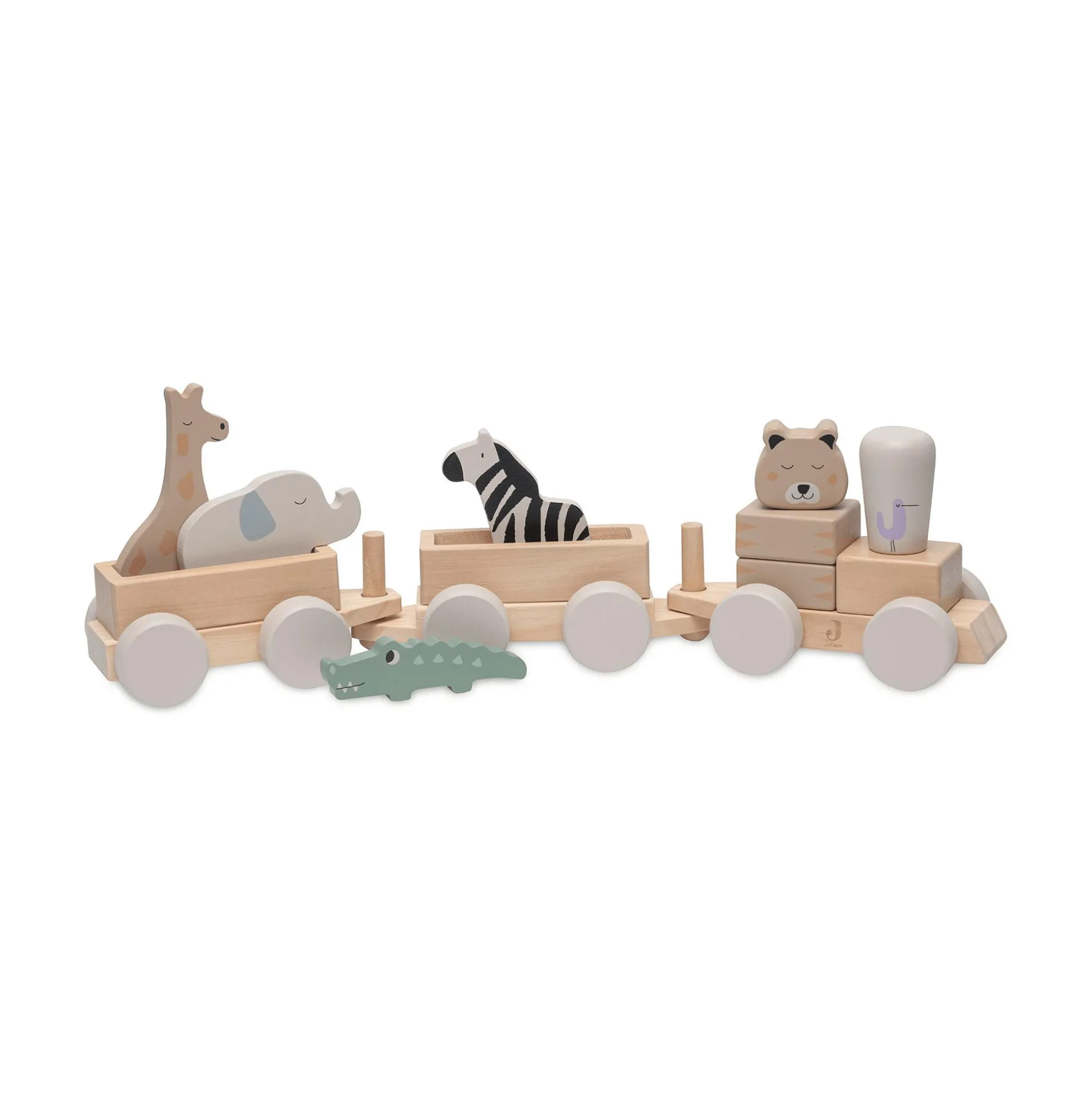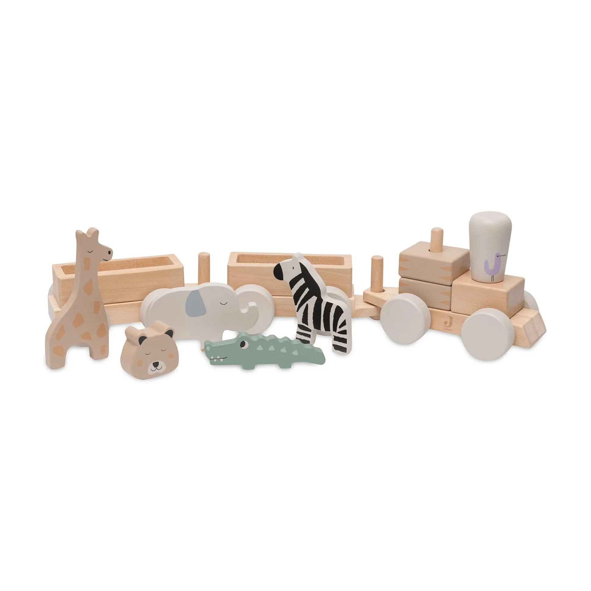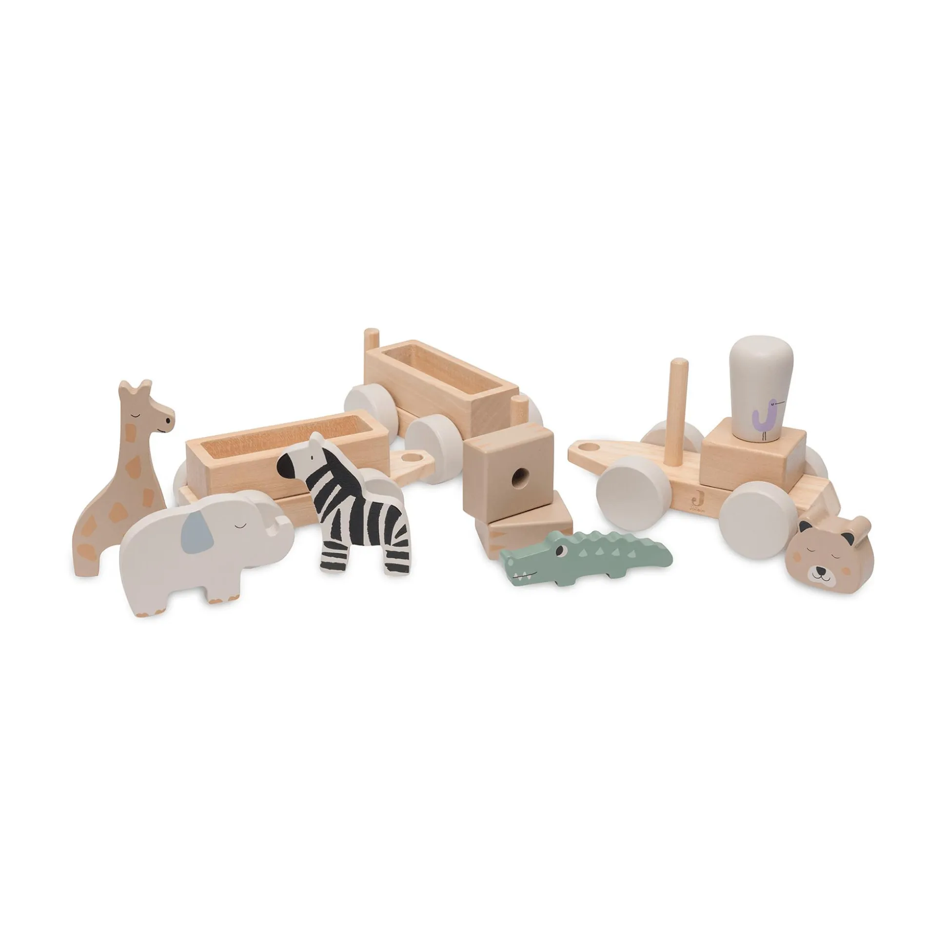 Die Holzeisenbahn Jungle Jambo von Jollein bringt Bewegung und Fantasie ins Kinderzimmer. Ausgestattet mit Rädern, Lenkung und Bremsen, sorgt sie für abwechslungsreichen Spielspaß und spannende Abenteuer.Die liebevoll gestalteten Tierfiguren – darunter Krokodil, Giraffe, Elefant, Zebra und Gepard – machen die Eisenbahn zu einem besonderen Hingucker. Sie ist ideal für kleine Kinderhände und fördert spielerisch die Entwicklung deines Lieblings.