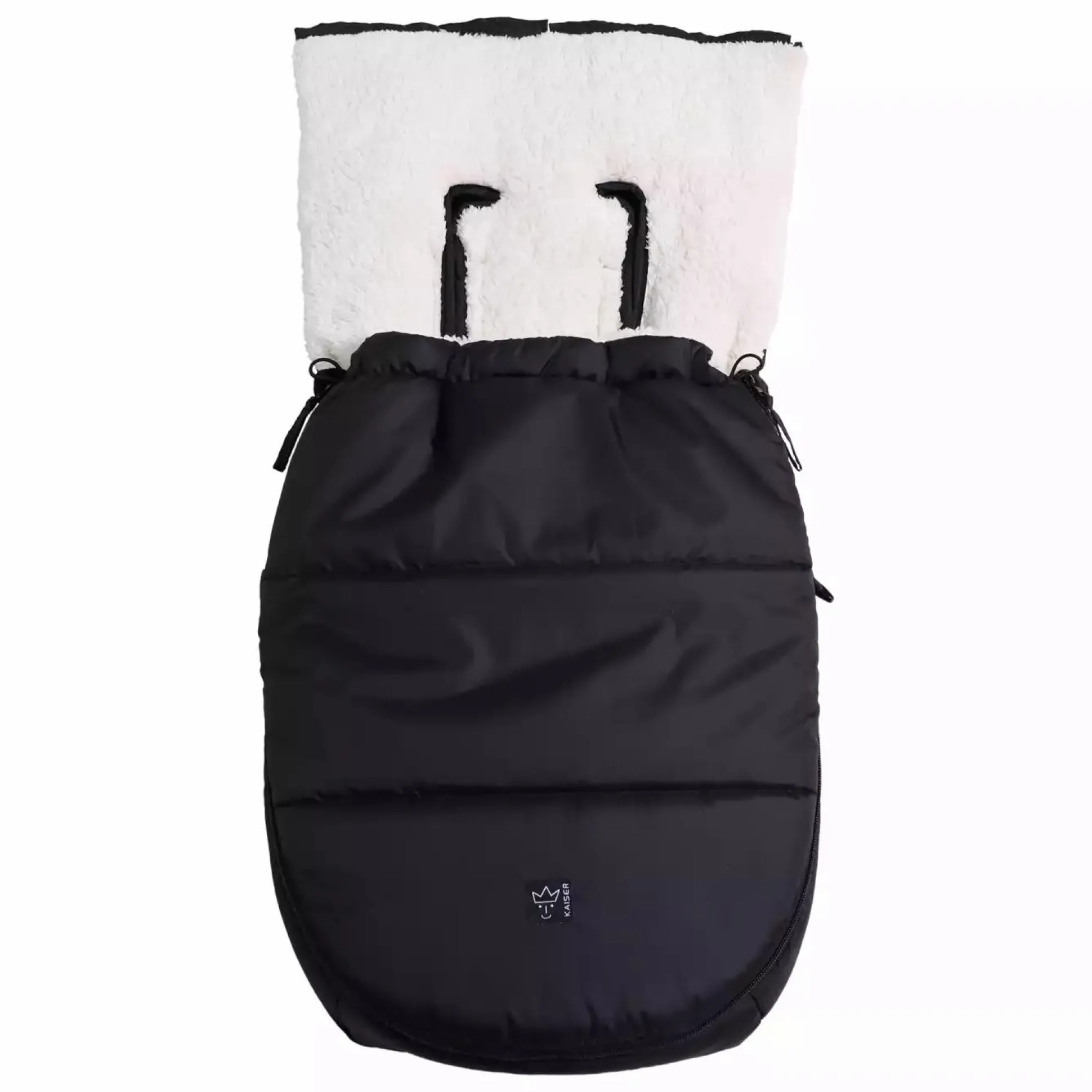 Der schwarze KAISER Fußsack Hoody 2.0 passt in alle Gruppe 0+ Babyschalen, Babywannen und Tragetaschen, besitzt eine Breite von 40 cm sowie eine Länge von 80 cm und ist für Babys von Geburt an bis 12 Monate geeignet.
