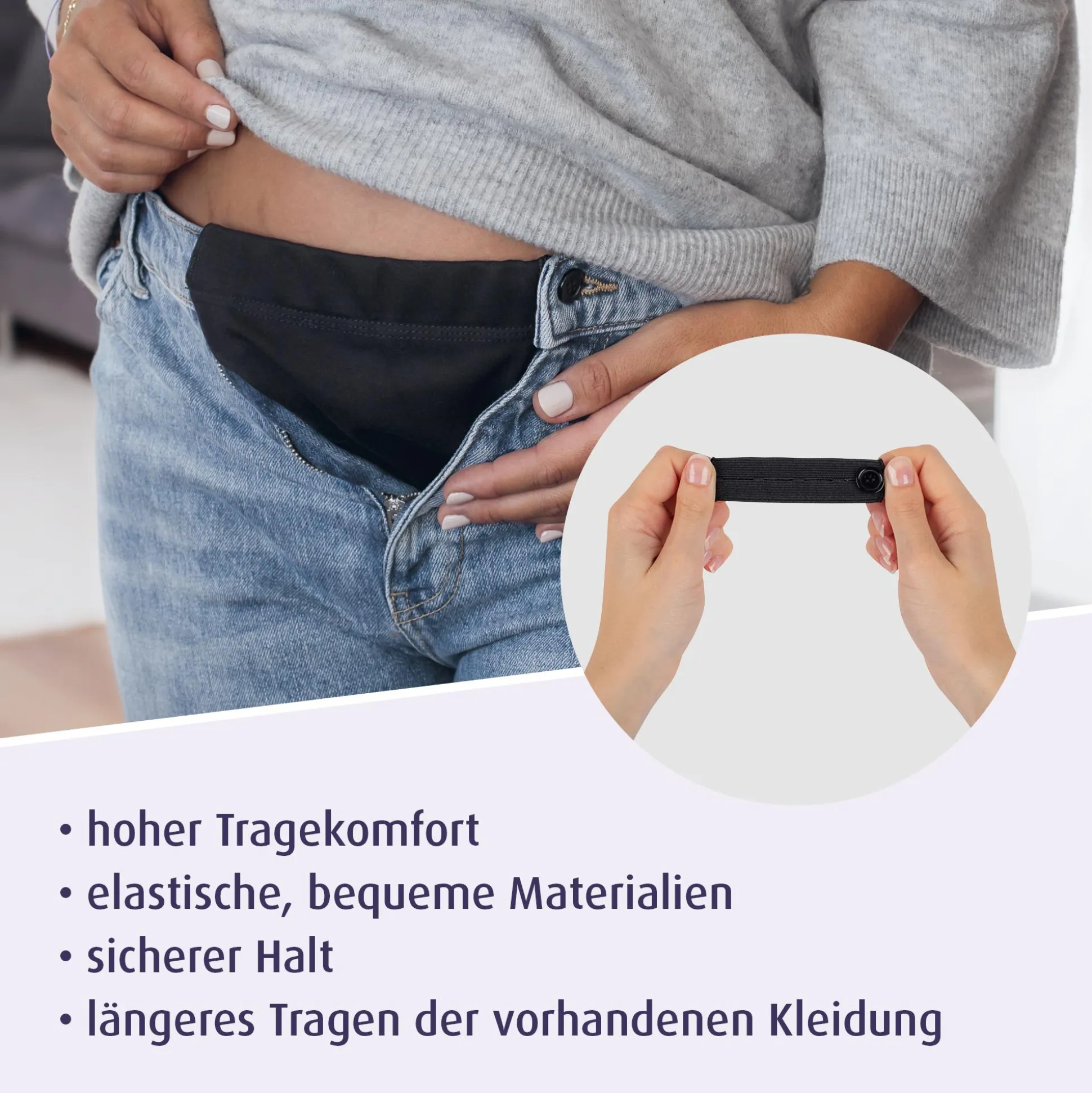 - verwandelt normale Hosen in bequeme Umstandsmode
