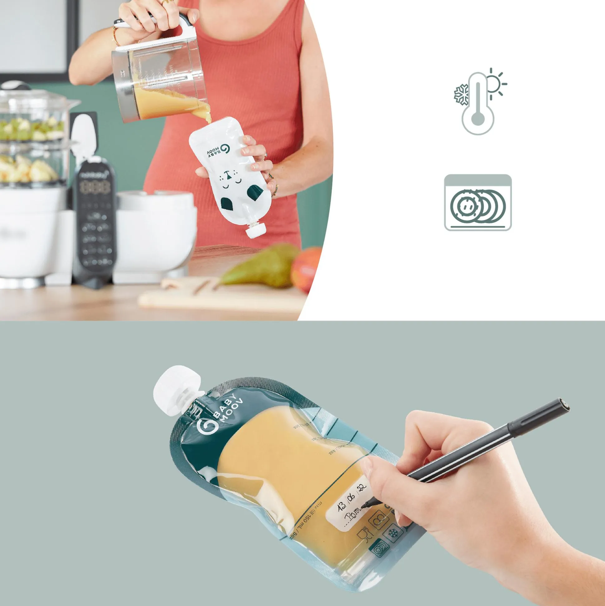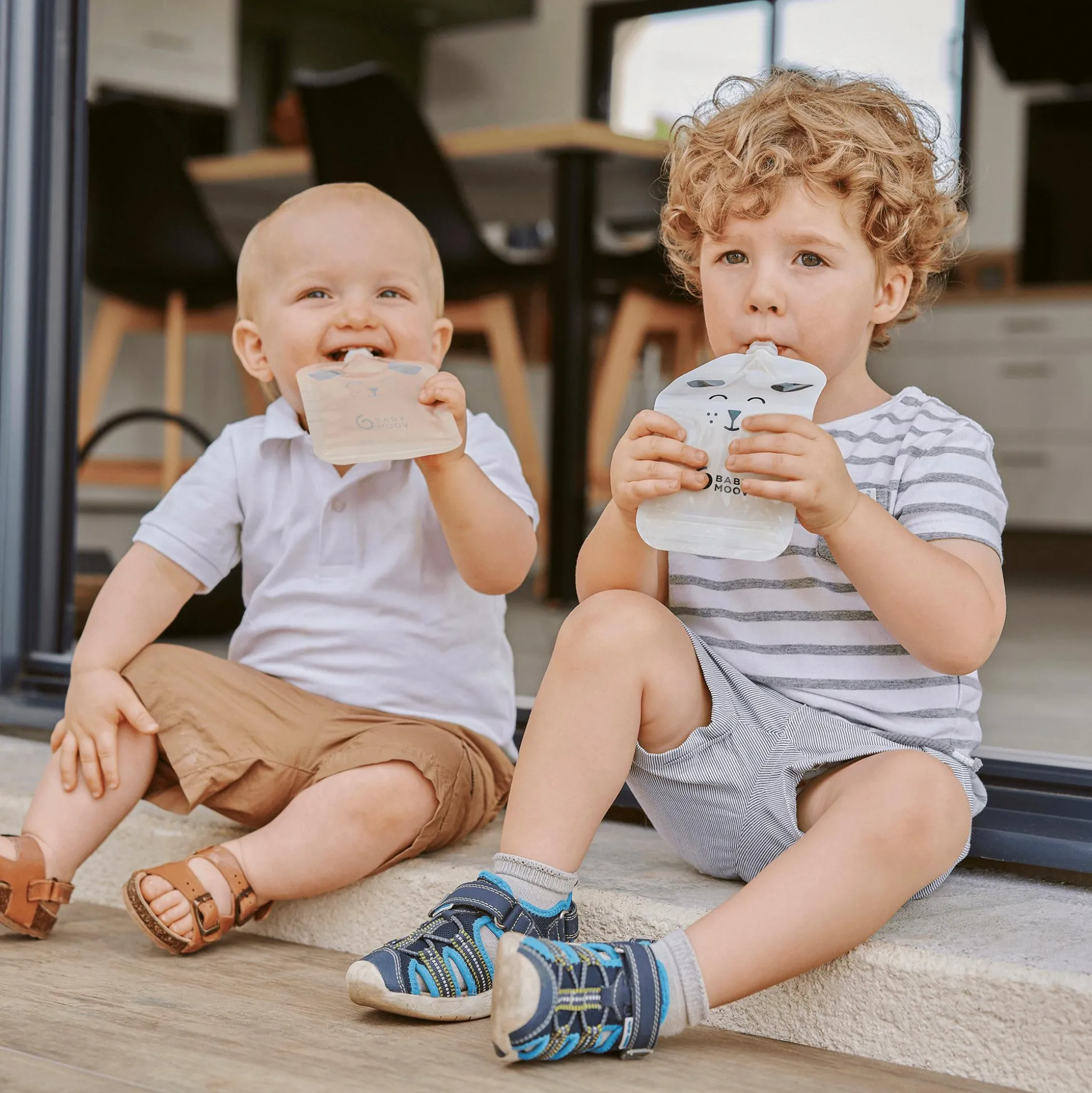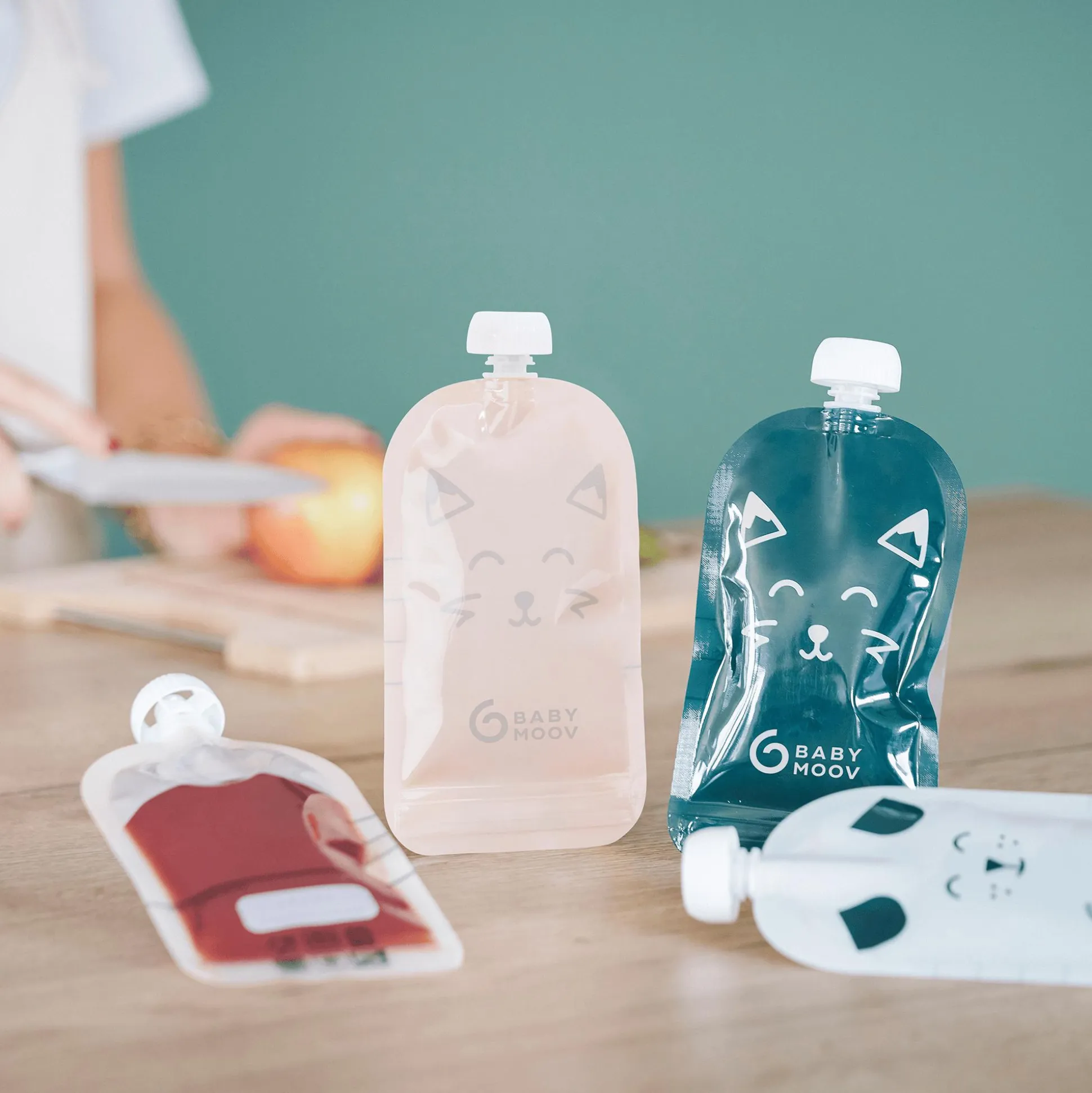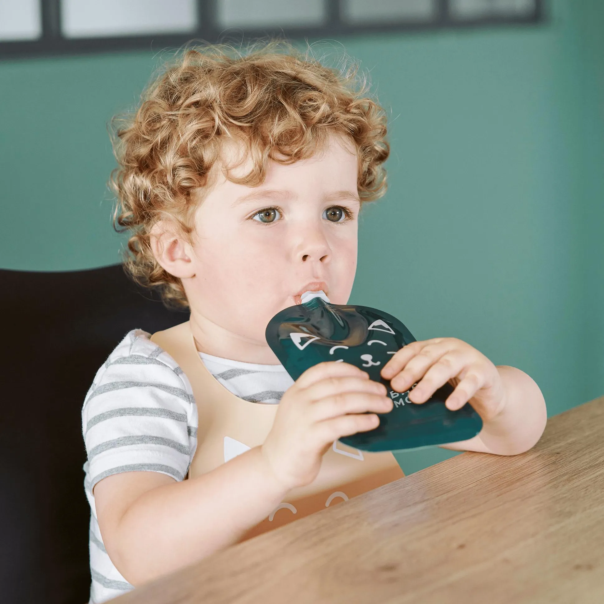 Je nach Geschmack deines Kindes kannst du die Beutel mit 150ml Püree, Kompott, Joghurts oder vieles mehr befüllen. Sie haben eine große Öffnung auf der Unterseite und lassen sich dank des Zippverschlusses verlässlich verschließen.
