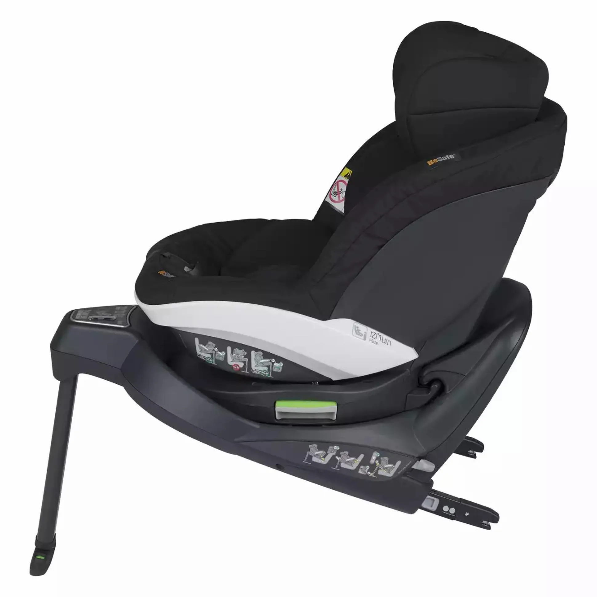 Der BeSafe iZi Turn i-Size ist ein 360° drehbarer Autokindersitz. Er ist nach dem neuesten Sicherheitsstandard UN R129 (i-Size) geprüft und zugelassen. Als reiner Reboarder ermöglicht er Kindern ab dem ca. 6. Monat bis zum ca. 4. Lebensjahr sicher rückwärts und vorwärts mitzufahren. Er ist mit 2 Sicherheits- Schichten ausgestattet, wie den eingebauten Seitenaufprallschutz in der Sitzschale und einem zusätzlichen Seitenaufprallschutz welcher zusätzlich 20% der Kräfte aufnimmt. Das nutzerfreundliche Design des iZi Turn i-Size ermöglicht stressfreies Reisen für dich und dein Baby. Die 360° Drehfunktion ermöglicht dir den Sitz in jeder Ruheposition zum Ein- und Aussteigen zur Autotür zu rotieren. Auch das Anschnallen wird dadurch Kinderleicht. Die 10-Stufen-Kopfstütze und Schultergurte sind verstellbar und können mit nur einem Handgriff an dein Kind angepasst werden. Optische und akustische Indikatoren helfen den Kindersitz korrekt und einfach im Fahrzeug einzubauen. Für zusätzlichen Komfort, können die 4 Ruhepositionen auch nach dem Einbau verstellt werden. Der Sitz ist ausgestattet mit einer speziellen Einbaumethode, der Universal Level Technology™, sie ermöglicht stets einen horizontalen Einbau im Auto. Hochwertige Materialien, weiche, saugfähige Stoffe und gute Polsterung sorgen für noch mehr Sicherheit. Für eine optimale Ruheposition ist der Kindersitz mit den Two-Fit Cushions™ ausgestattet, bestehend aus zwei separaten Teilen können die beiden Kissen getrennt aus dem Sitz genommen werden. Eine offene Struktur als Belüftungssystem im Rückenbereich ist angenehm an heißen Tagen.