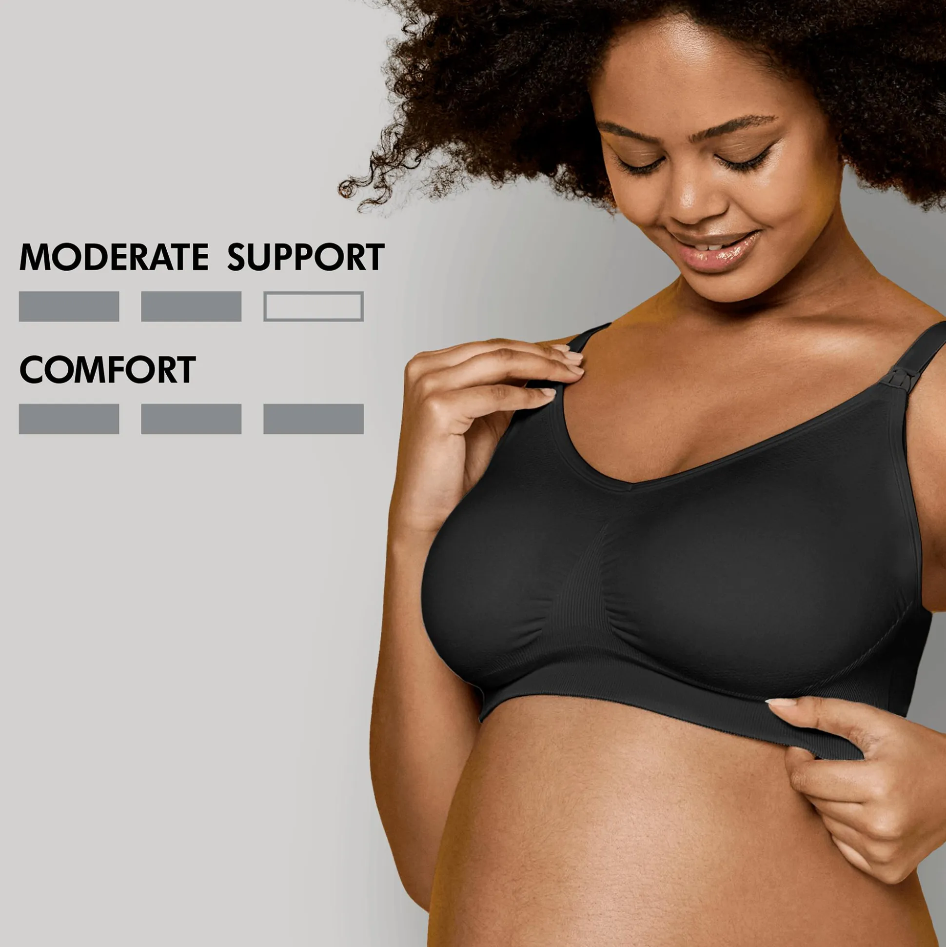 Der BH ist außerdem bügel- und nahtlos und ist daher leicht, bequem und angenehm zu tragen. Dank der Adaptive Stretch-Technologie wächst der BH auch mit deinem sich verändernden Körper mit. Mithilfe der verstellbaren Träger kannst du ihn außerdem individuell anpassen. Selbstverständlich bietet der Keep Cool Still-BH auch vollständig herunterklappbare Cups, damit du deinen Nachwuchs einfach und flexibel stillen und eine Bindung aufbauen kannst.