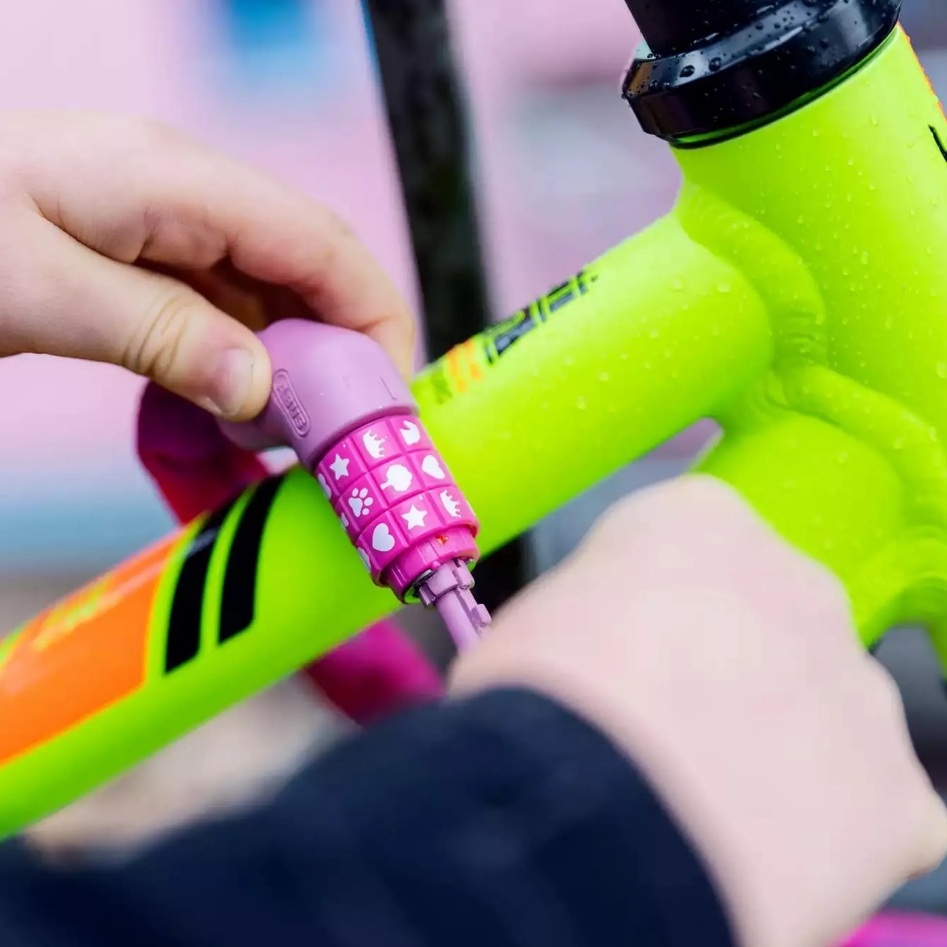 | Color | Pink, PinkVorteilekinderfreundliche Handhabung durch Symbole statt ZahlenVierkantkette mit Textilschlauch zum Schutz vor Lackschäden |