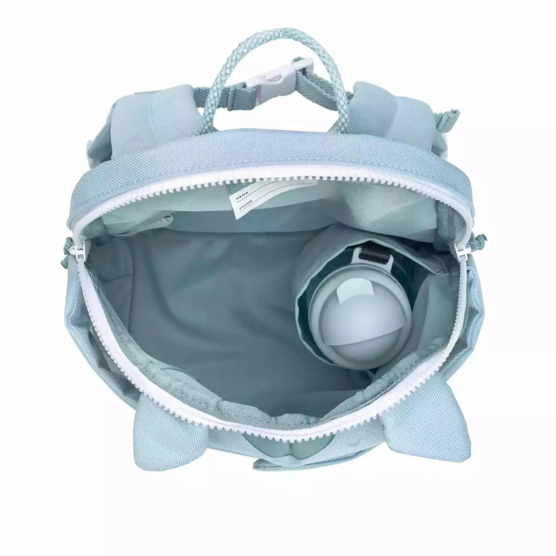 Der wasserabweisende Kinderrucksack hat ein geräumiges Hauptfach, höhenverstellbare Schulter- und Brustgurte, einen Trinkflaschenhalter im Inneren sowie ein Namensschild, um Verwechselungen auszuschließen. Im zusätzlichen Reißverschlussfach außen, das sich seitlich am Rückenteil befindet, lassen sich wichtige Sachen aufbewahren.
