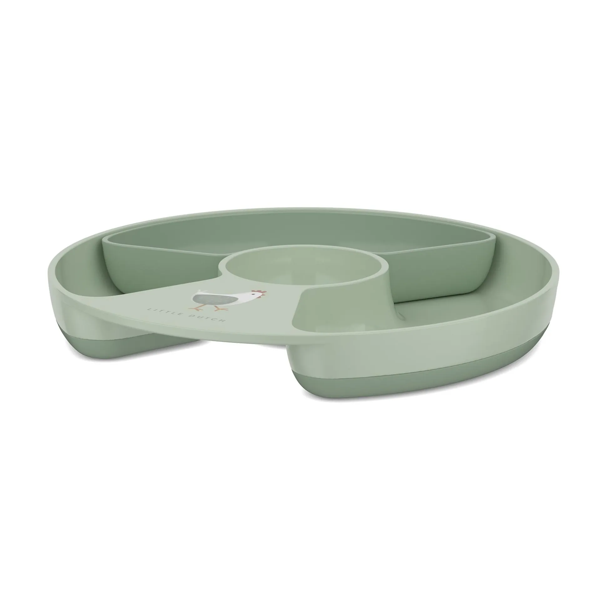 Der Kinderteller mit Unterteilung Mio im Design Little Farm von Mepal ist ideal für die ersten selbstständigen Essversuche deines Lieblings geeignet und bietet mit seinem niedlichen Design sowie funktionalen Details eine durchdachte Lösung im Alltag.Dank der hohen Ränder und Ecken fällt das Aufnehmen von Speisen leichter, während der rutschfeste Boden für sicheren Halt sorgt.Der herausnehmbare Einsatz lässt sich flexibel in zwei, drei oder vier Fächer unterteilen, sodass unterschiedliche Speisen sauber getrennt bleiben. Außerdem ist der Teller für Kinder ab ca. sechs Monaten geeignet, besteht aus BPA-freiem Material und überzeugt durch seine Funktionalität.