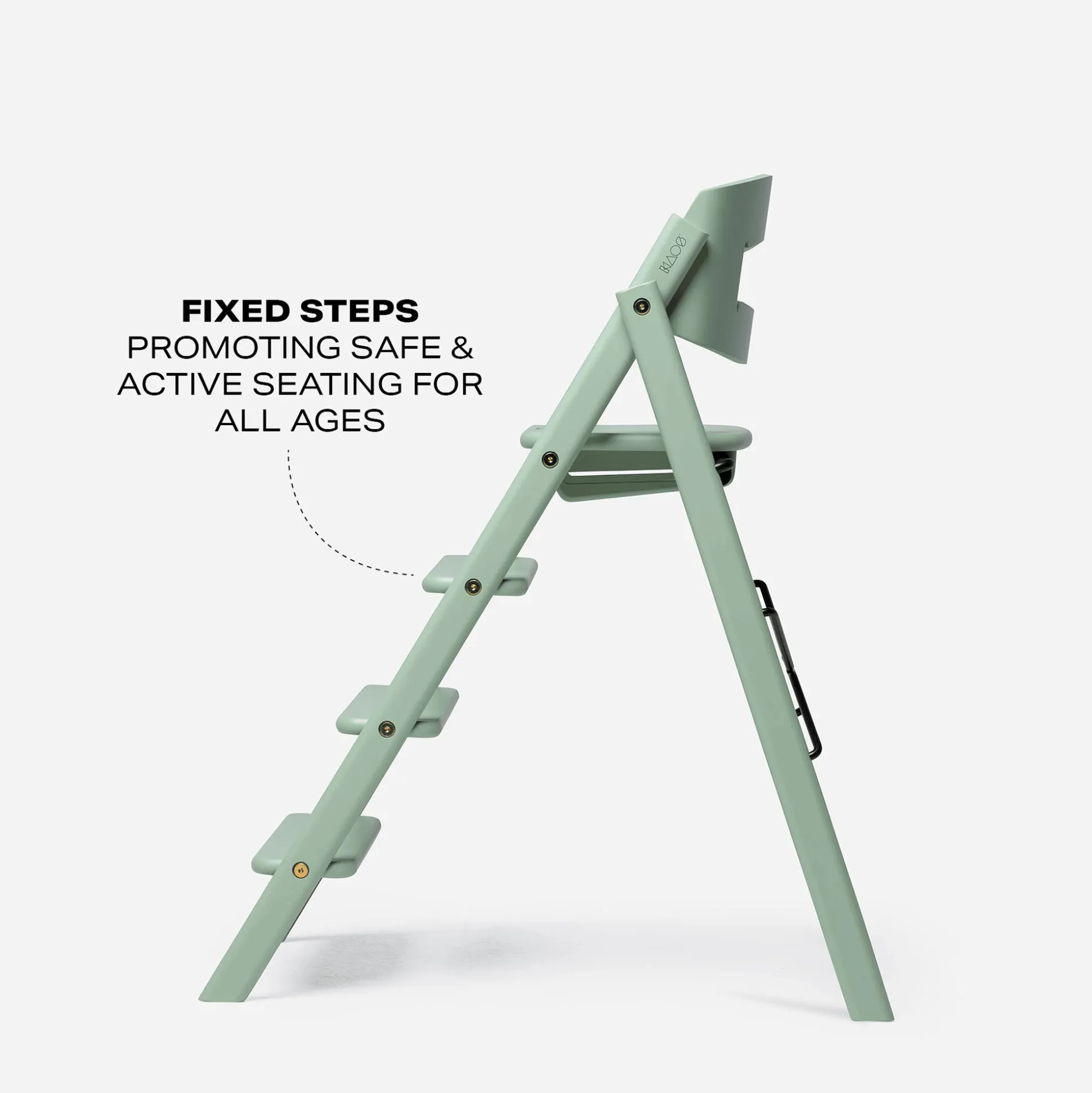 Hoch oben auf dem Klapp-Hochstuhl Buche Pale Green von KAOS thront dein kleiner Schatz. Mithilfe der drei Stufen kann er den Stuhl selbstständig hochklettern und am Frühstück, Mittag- oder Abendessen teilnehmen. Dabei nimmt dein Kind eine ergonomisch korrekte Sitzhaltung ein, da es die Möglichkeit hat, die Beine auf eine Stufe zu stellen.