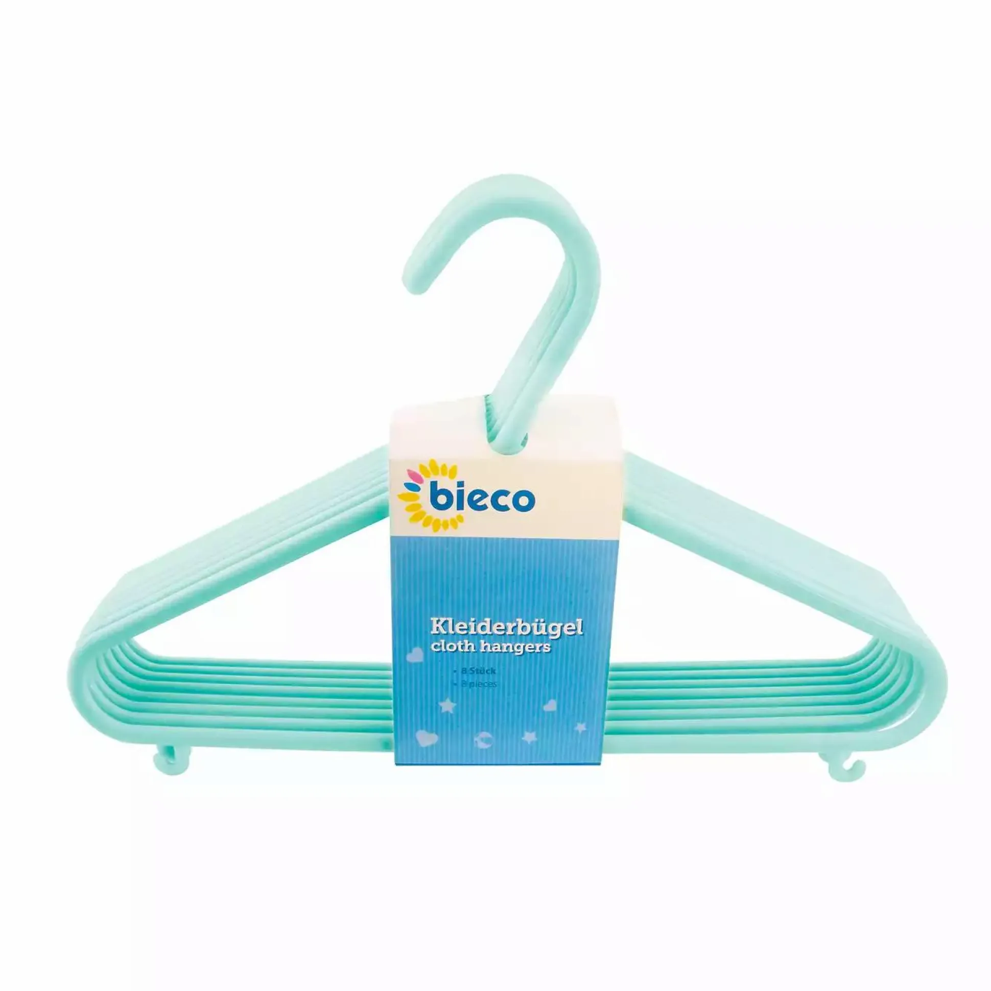 Dieses praktische 8-teilige Kleiderbügel-Set in der Farbe Türkis sorgt für Ordnung im Kleiderschrank deines Kindes.