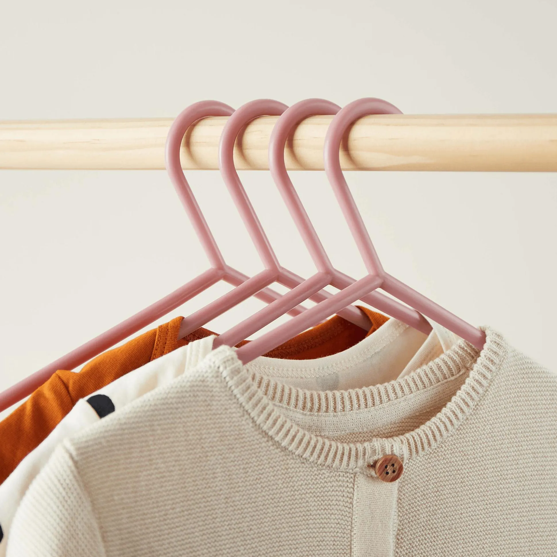 Aus hochwertigem Kunststoff gefertigt, sind die Babykleiderbügel besonders leicht im Gewicht, sehr stabil und auch für schwere Kleidungsstücke wie Winterjacken geeignet. Dadurch sind sie nicht nur ein must have in jedem Kinderzimmer, sondern auch ideal für Reisen geeignet – so ist immer alles gut organisiert. Dank einer Länge von etwa 30 cm können sie sehr lange für Kinderkleidung unterschiedlicher Größen genutzt werden.