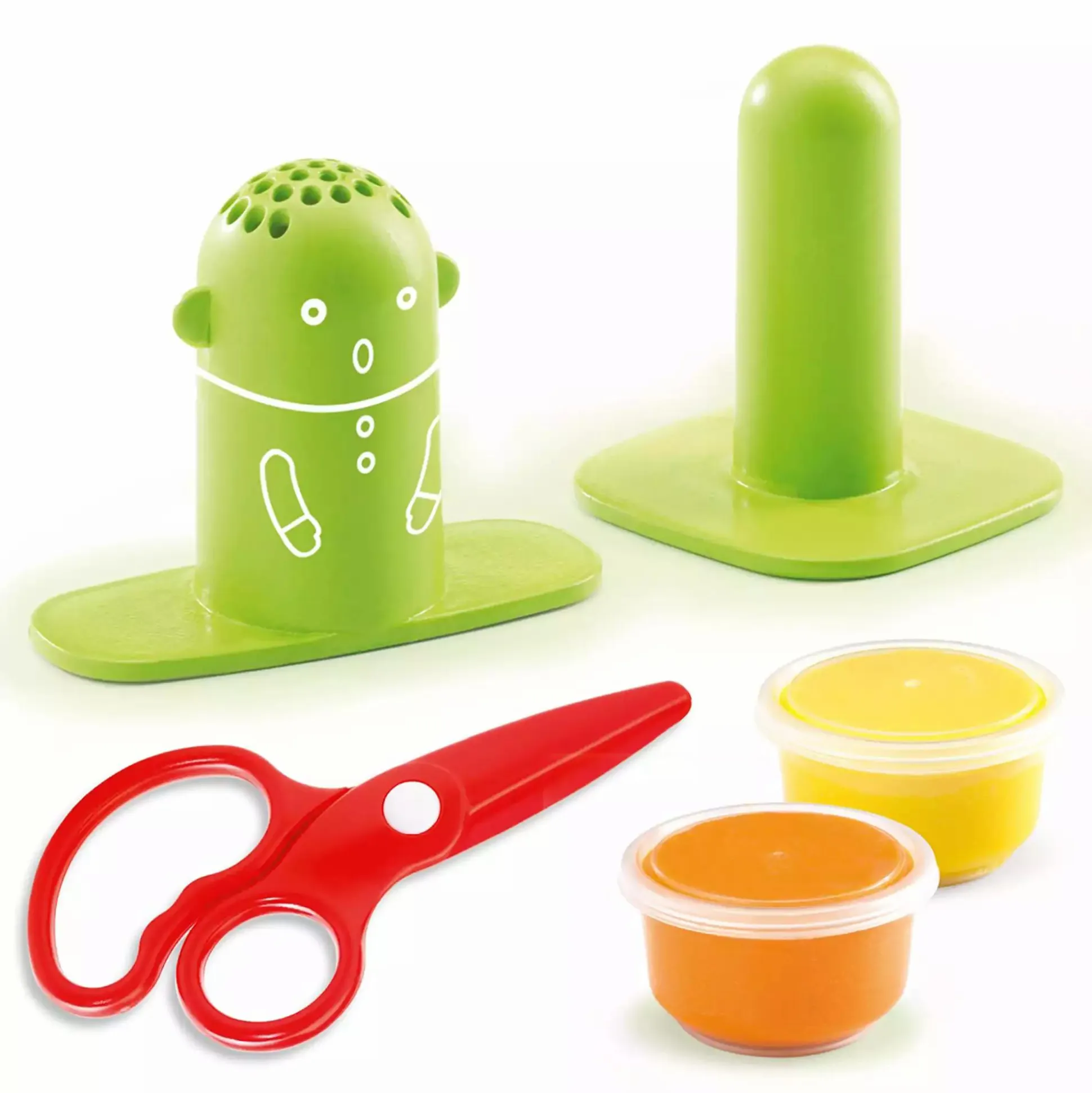 - Inhalt: 2 Figuren, 2x 35 g Knete, 1 Schere
