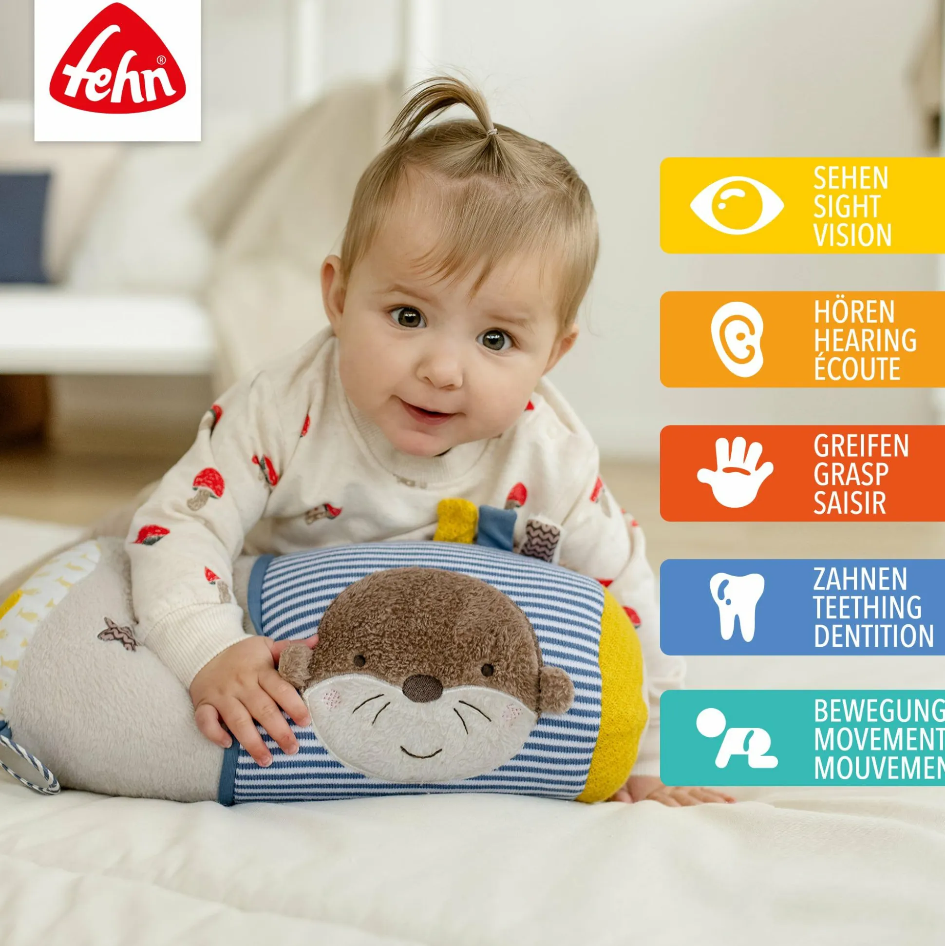 Lernt dein Baby gerade Krabbeln? – der Otter Theo kann mit seiner Krabbelrolle von fehn deinen kleinen Schatz bei den ersten Krabbel- und Gehversuchen unterstützen. Das weiche Material lädt zum Abstützen ein und mit weiteren Details wie der Rassel, etwas Raschelpapier, einem Glöckchen, einem Spiegel und einem Softbeißer kann gespielt werden. All das hat den Vorteil, dass die Sinne, die Motorik und die Koordination deines Lieblings gefördert werden.