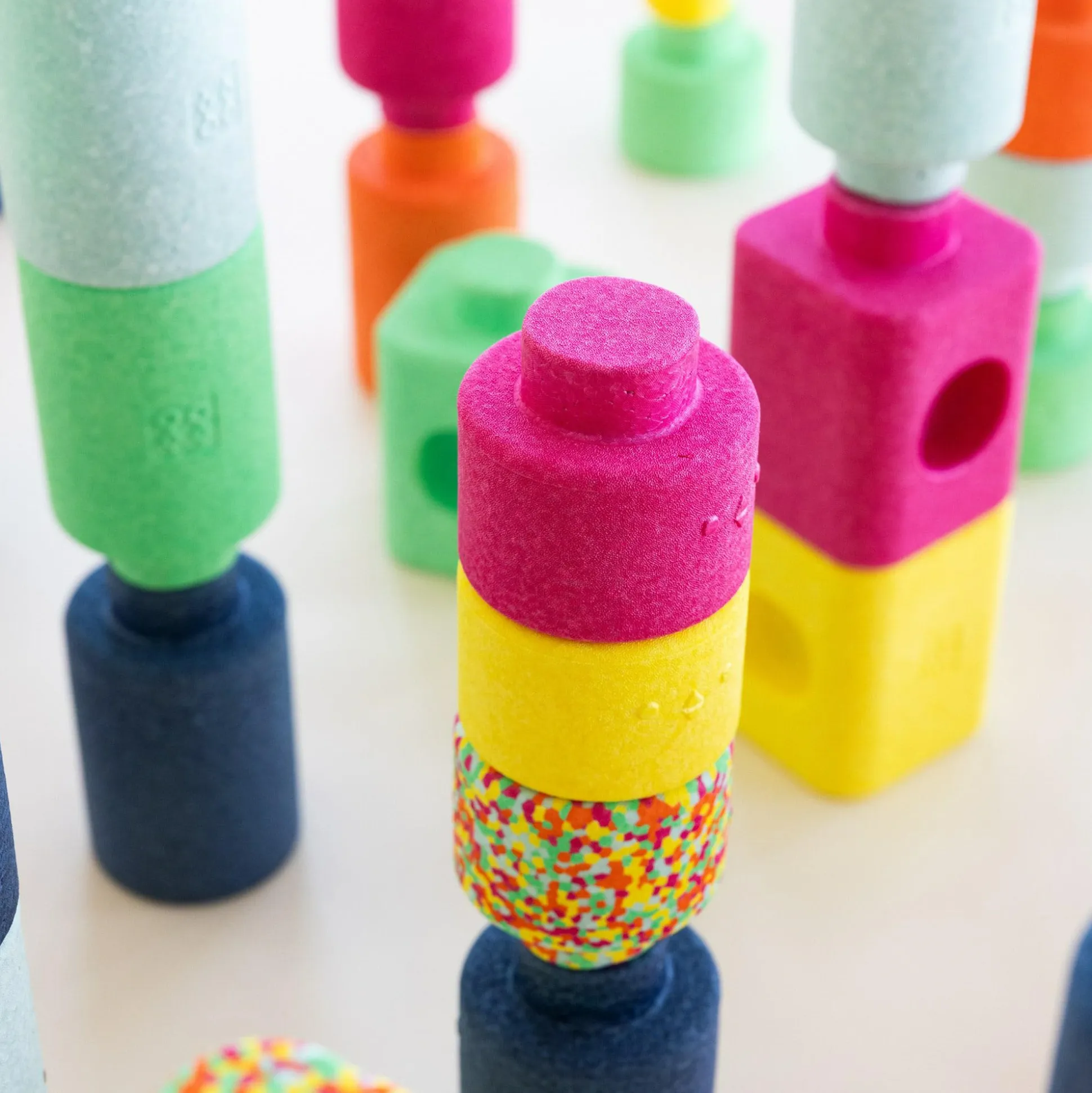 Das Set fördert spielerisch die Hand- und Augen-Koordination sowie die Motorik, während dein Kind versucht, die verschiedenen Formen zu stabilen Türmen zu stapeln oder die Korkkugel zielsicher einzusetzen. Dabei sind die FANTASIFYR-Bausteine echte Teamplayer, denn sie lassen sich problemlos mit allen anderen bygge Bausteinen kombinieren, um noch größere Bauwerke zu erschaffen.