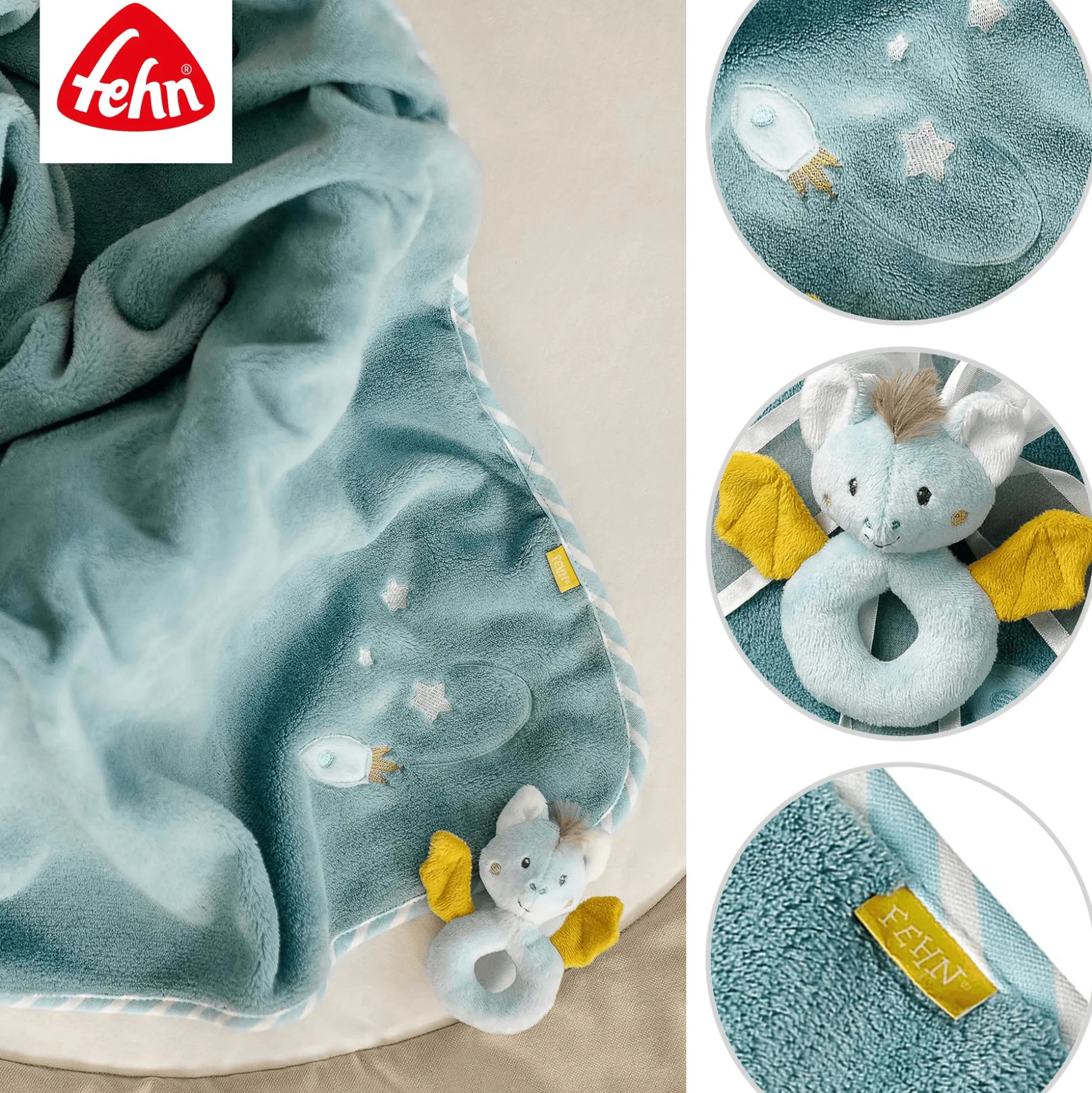 Kuschelfreunde aufgepasst! Die Kuscheldecke aus der Little Castle Kollektion zaubert schon den Kleinsten ein Lächeln ins Gesicht. Sie ist Schnuffeltuch, Seelentröster und Beschützer in einem und sorgt in jeder Situation für das Rundum-Wohlgefühl. Egal ob als Krabbelunterlage, zum Kuscheln mit Mama oder einfach zum Zudecken: Die Kuscheldecke ist nicht nur ein hübsches Accessoire, sondern hält dein Baby auch angenehm warm und spendet Geborgenheit beim Schmusen, Kuscheln und Träumen. Die kleine Fledermaus ist ein niedliches Extra zum Spielen. So ist die Decke ein perfekter Begleiter für zuhause und unterwegs.