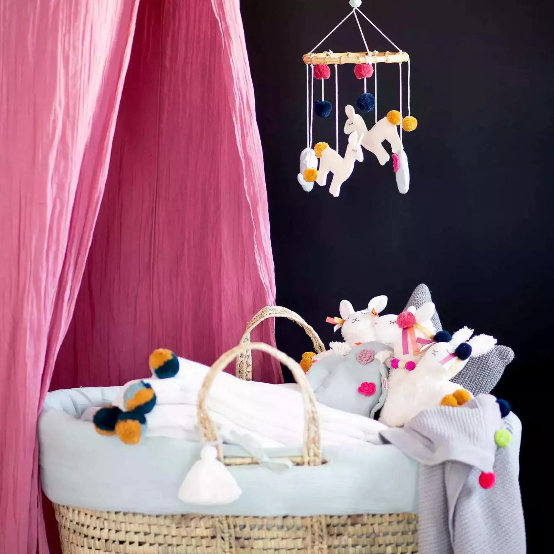 Das Lama Mobile mit Holzring von Kikadu passt durch sein natürliches Design mit verspielten und bunten Details aus ökologischen Materialien perfekt in jedes Kinderzimmer. Über dem Kinderbettchen für süße Träume oder dem Wickeltisch als Unterhaltung bereitet es deinem kleinen Schatz mit seinen leichten Bewegungen viel Freude.