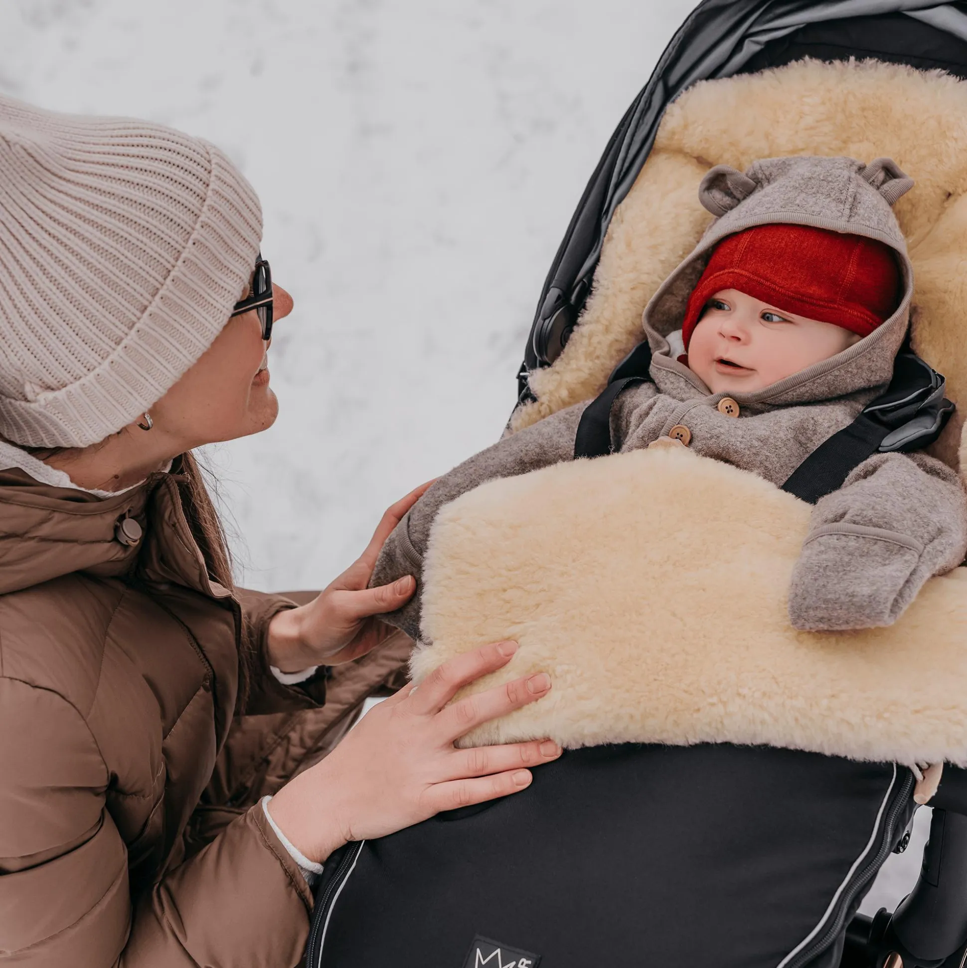 Der Lammfell Fußsack von KAISER bietet deinem kleinen Schatz eine sichere und warme Umgebung an kalten Tagen.