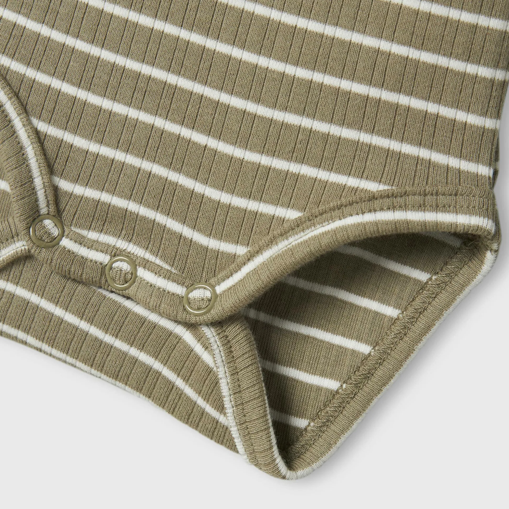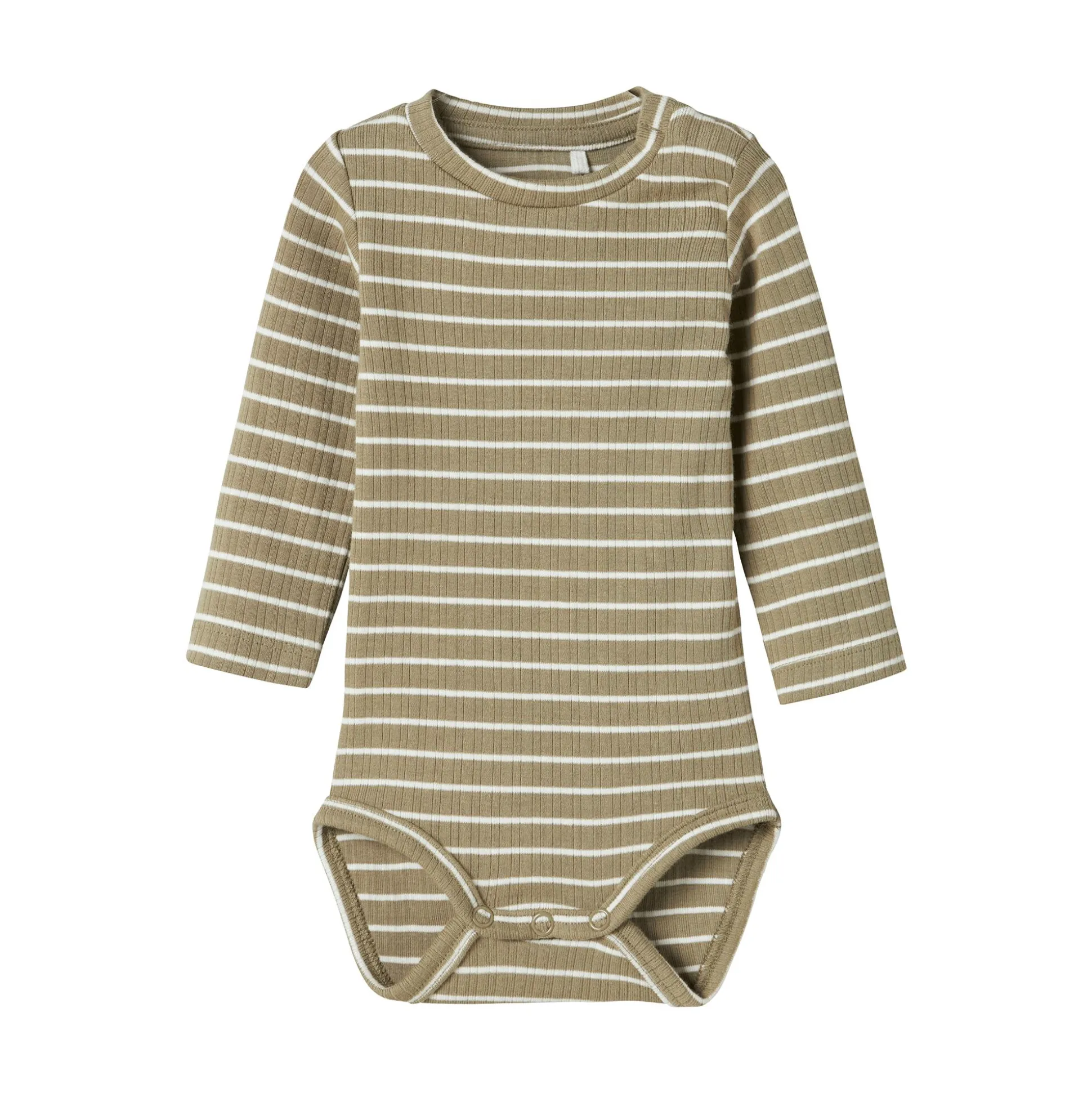 Der Langarmbody von name it ist der perfekte Begleiter für deinen kleinen Schatz an kühlen Tagen. In einem charmanten Khaki Streifenmuster gehalten, bringt er nicht nur Farbe ins Spiel, sondern auch jede Menge Komfort und praktische Funktionen.