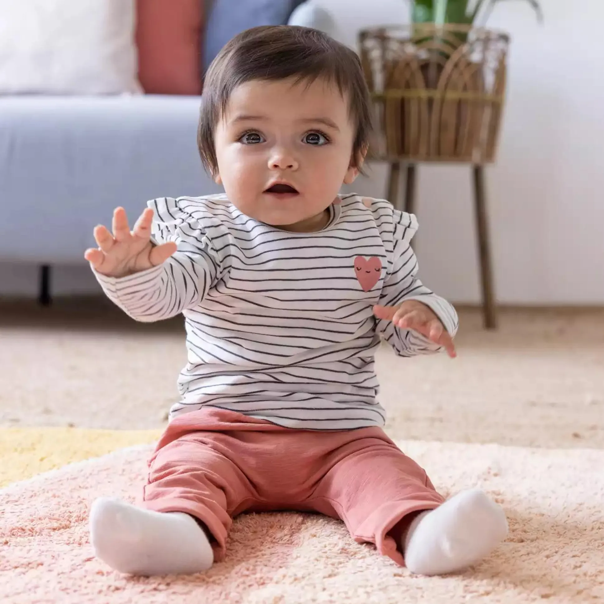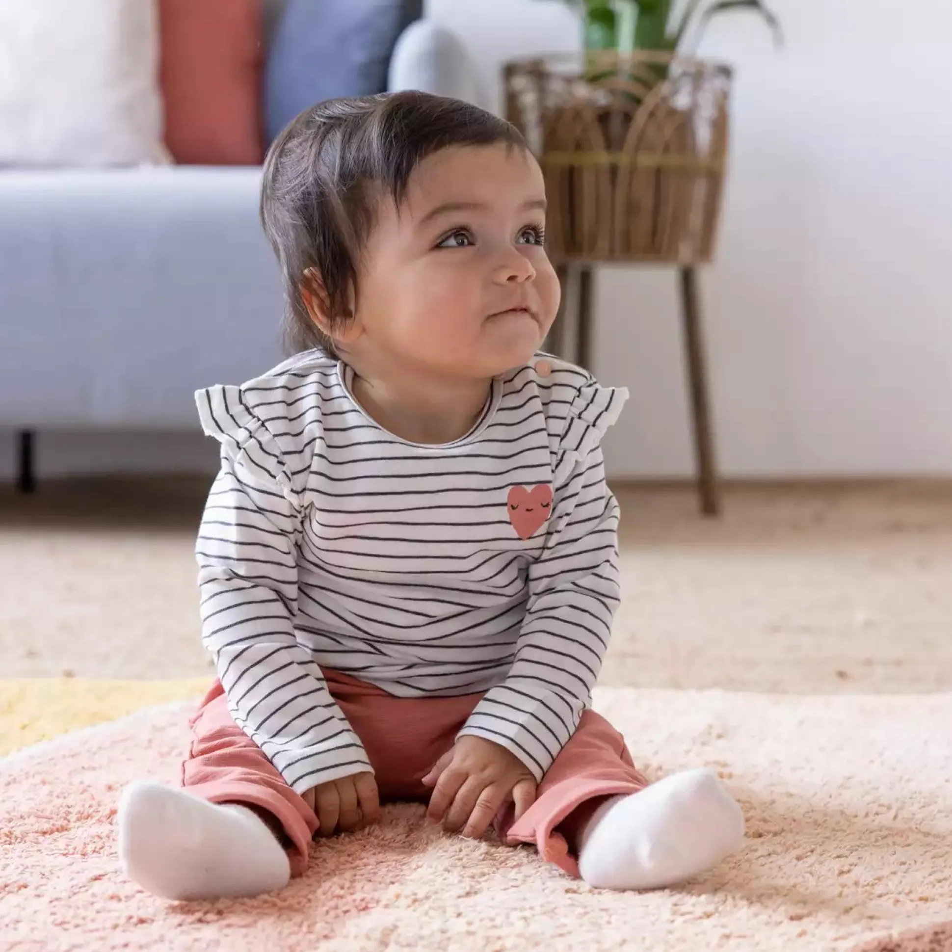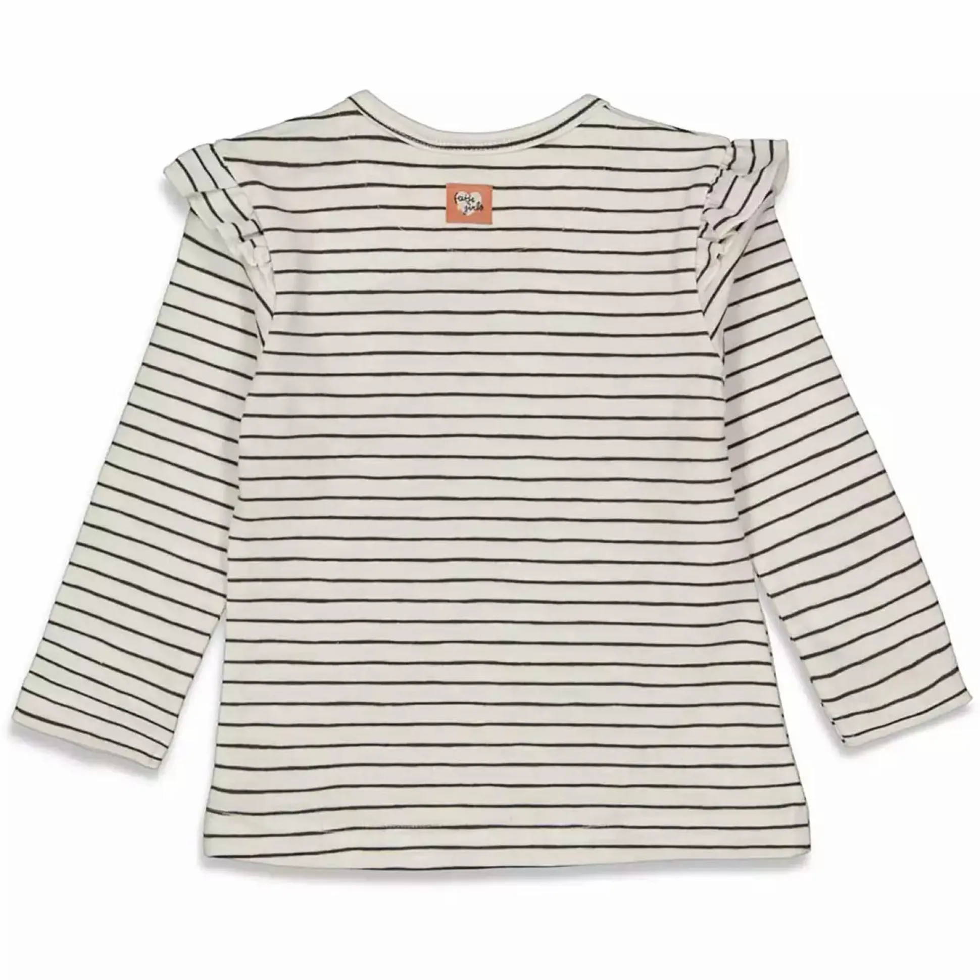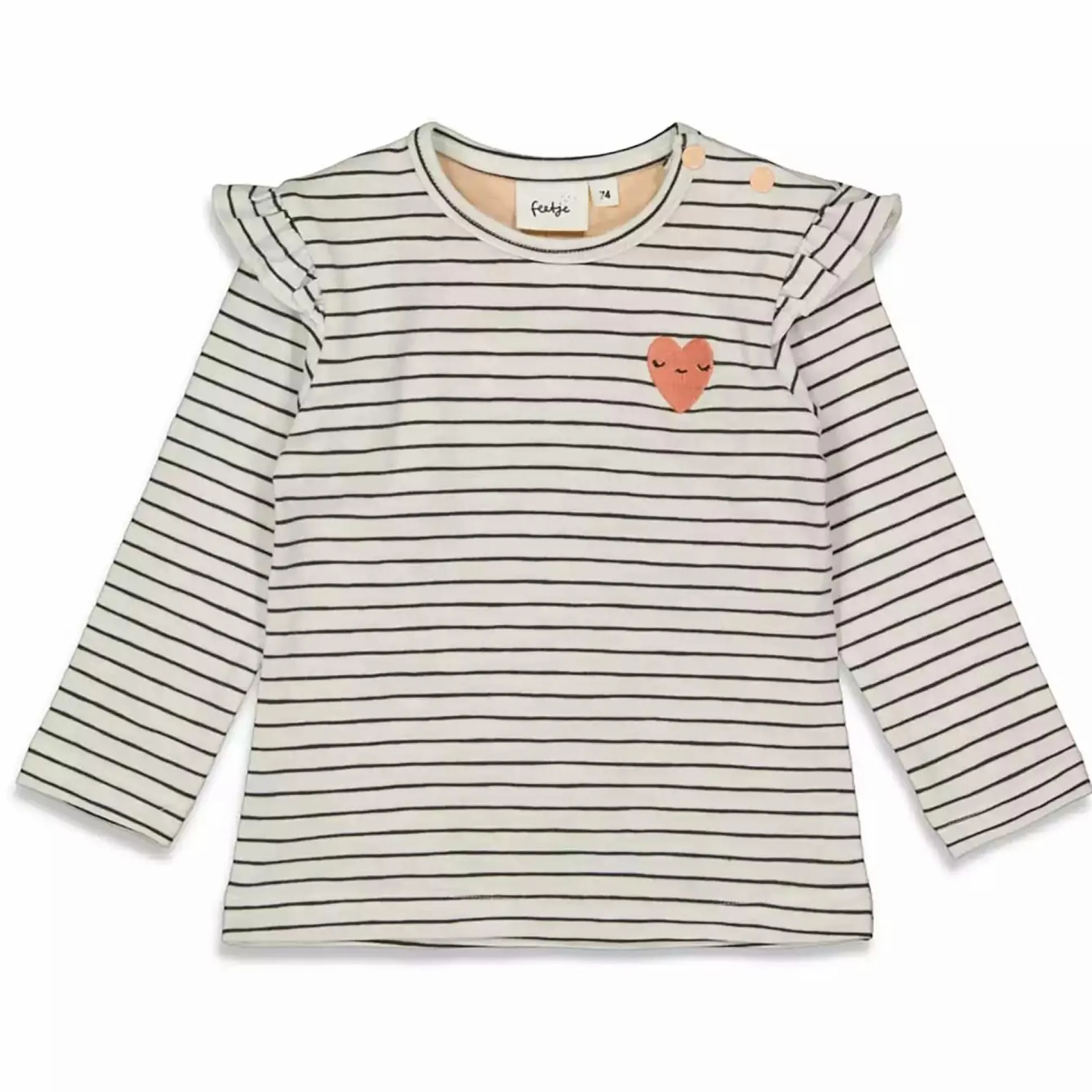 Das geringelte Langarmshirt von Feetje mit niedlichen Volants und kleiner Herz-Applikation darf in keinem Kleiderschrank fehlen.