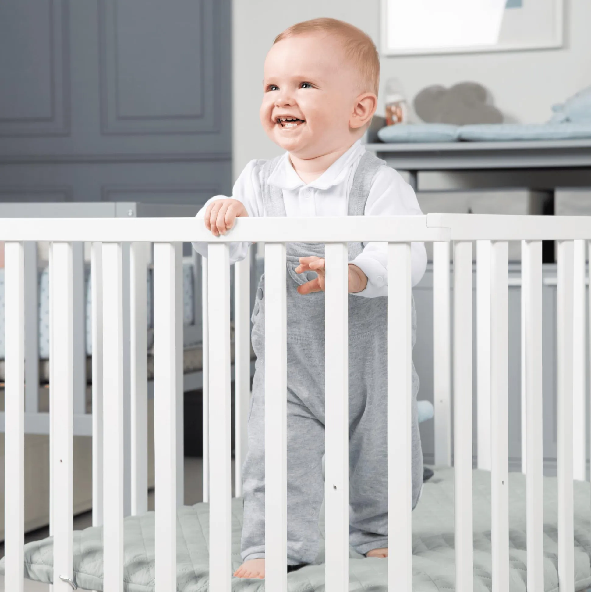 Die hochwertige, moderne ‚roba Style‘ Serie bietet Produkte für Babys, die mit Textilien aus pflegeleichter, gesteppter Mikrofaser ausgestattet sind. ‚roba Style‘ Produkte überzeugen durch ihre trendige Optik, die sich in jedes Wohn- und Babyzimmer integriert und ihre angenehm weiche Haptik. Der roba ist babyfreundlich und splitterfrei. Als besonders rückenschonend für euch als Eltern erweist sich die obere Position des 3-fach höhenverstellbaren Laufgitter-Bodens. Vier Bremsrollen sorgen bei diesem Laufstall für die nötige Mobilität sowie Standfestigkeit. Alle verwendeten Materialien des Krabbelgitters sind schadstoffgeprüft und zertifiziert. Zusätzlich werden sie regelmäßig während der Herstellung überprüft. Das Laufgitter wurde nach Norm EN 12227:2010 entwickelt.