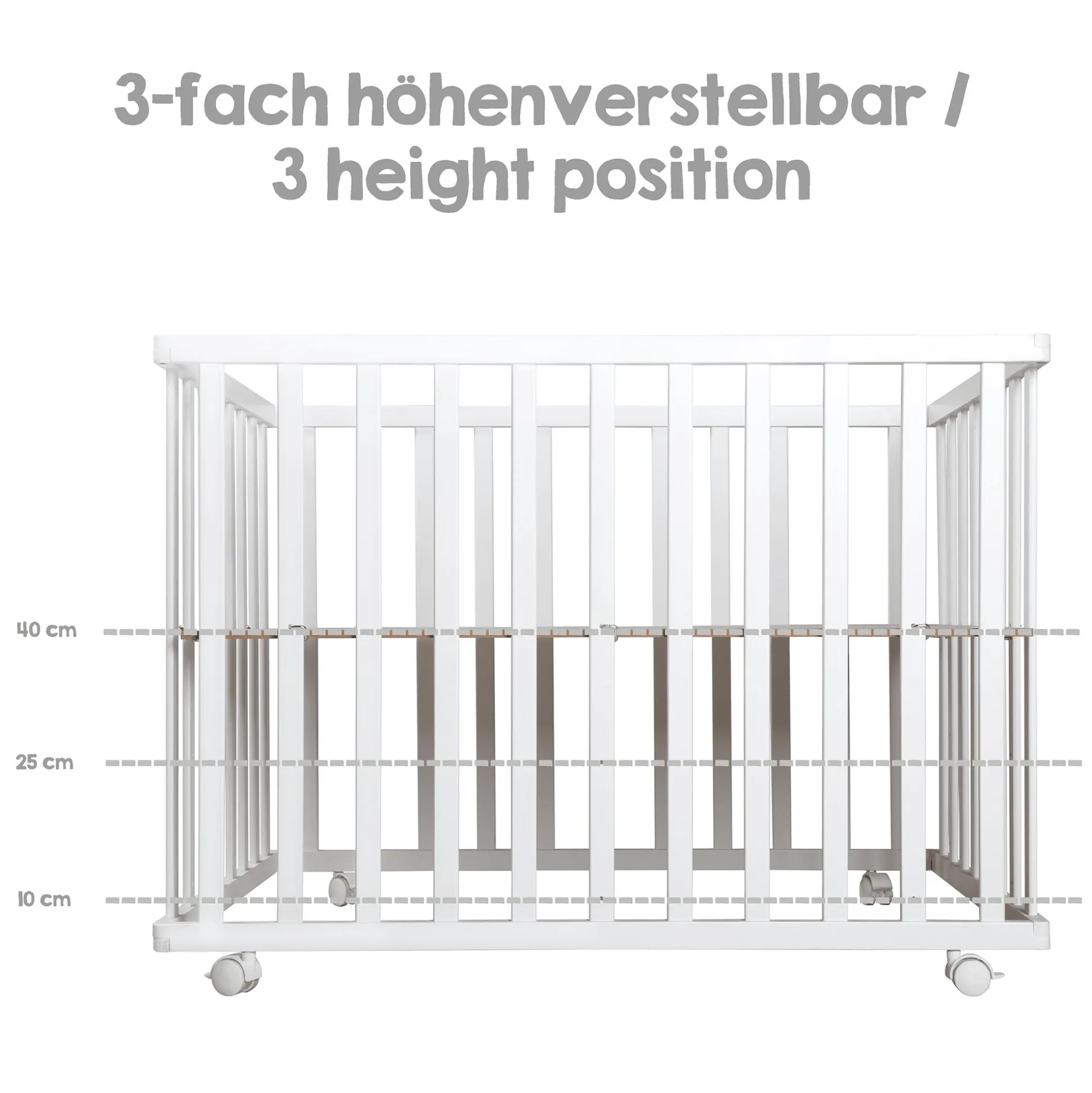- obere Position des Laufgitter-Bodens besonders rückenschonend für Eltern