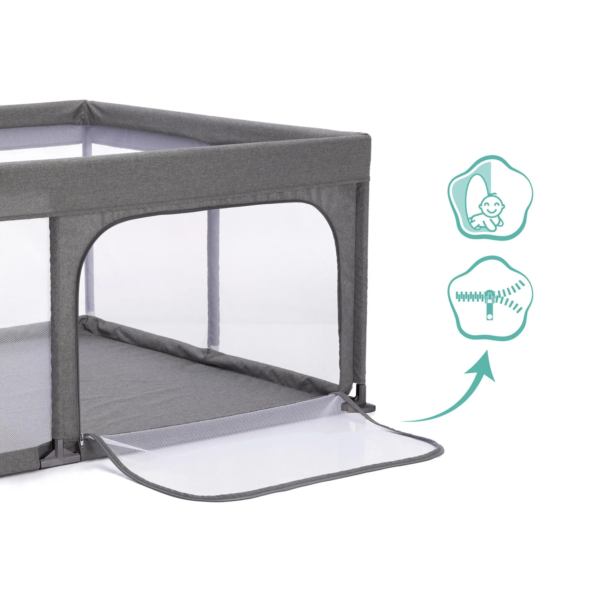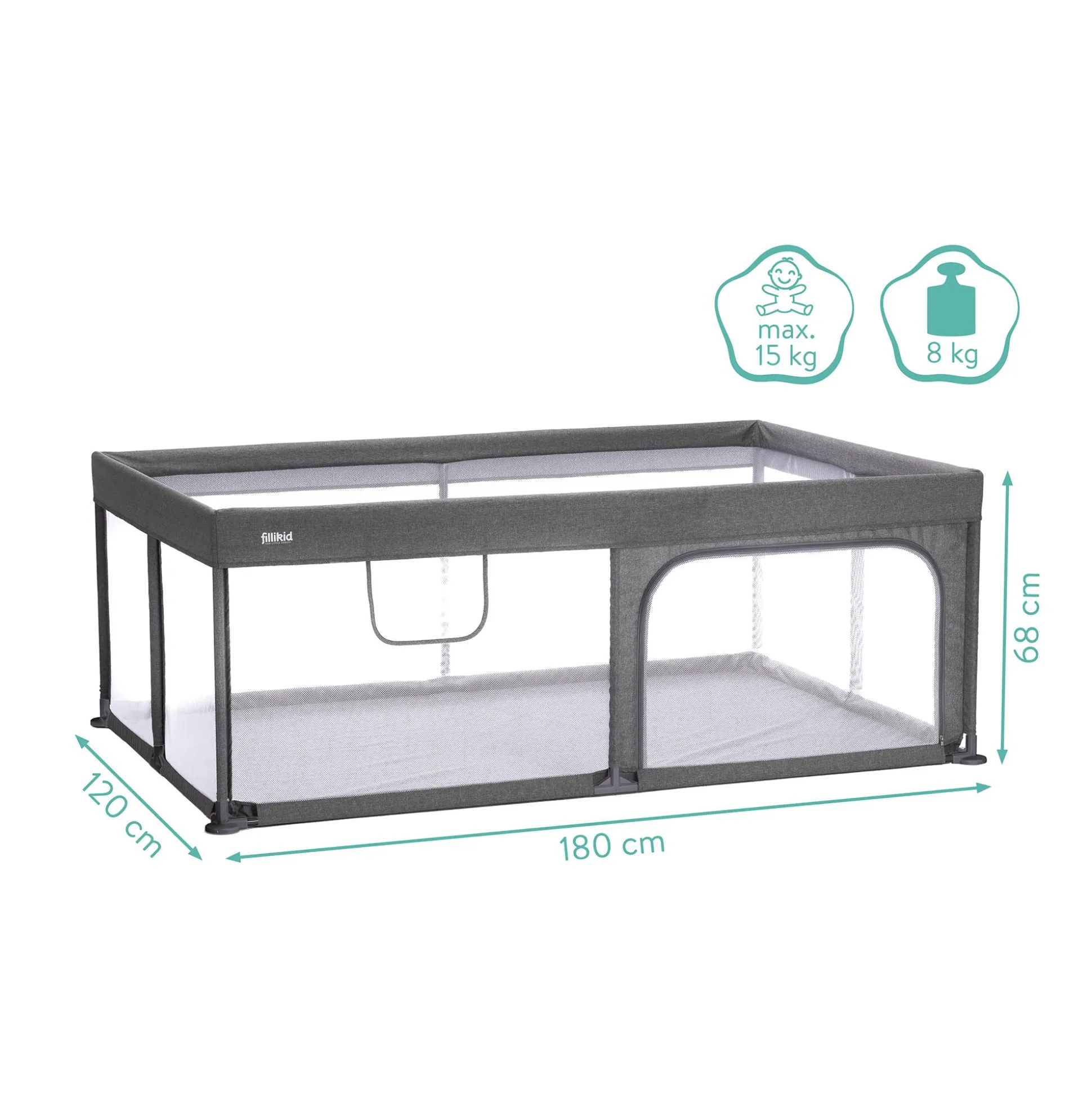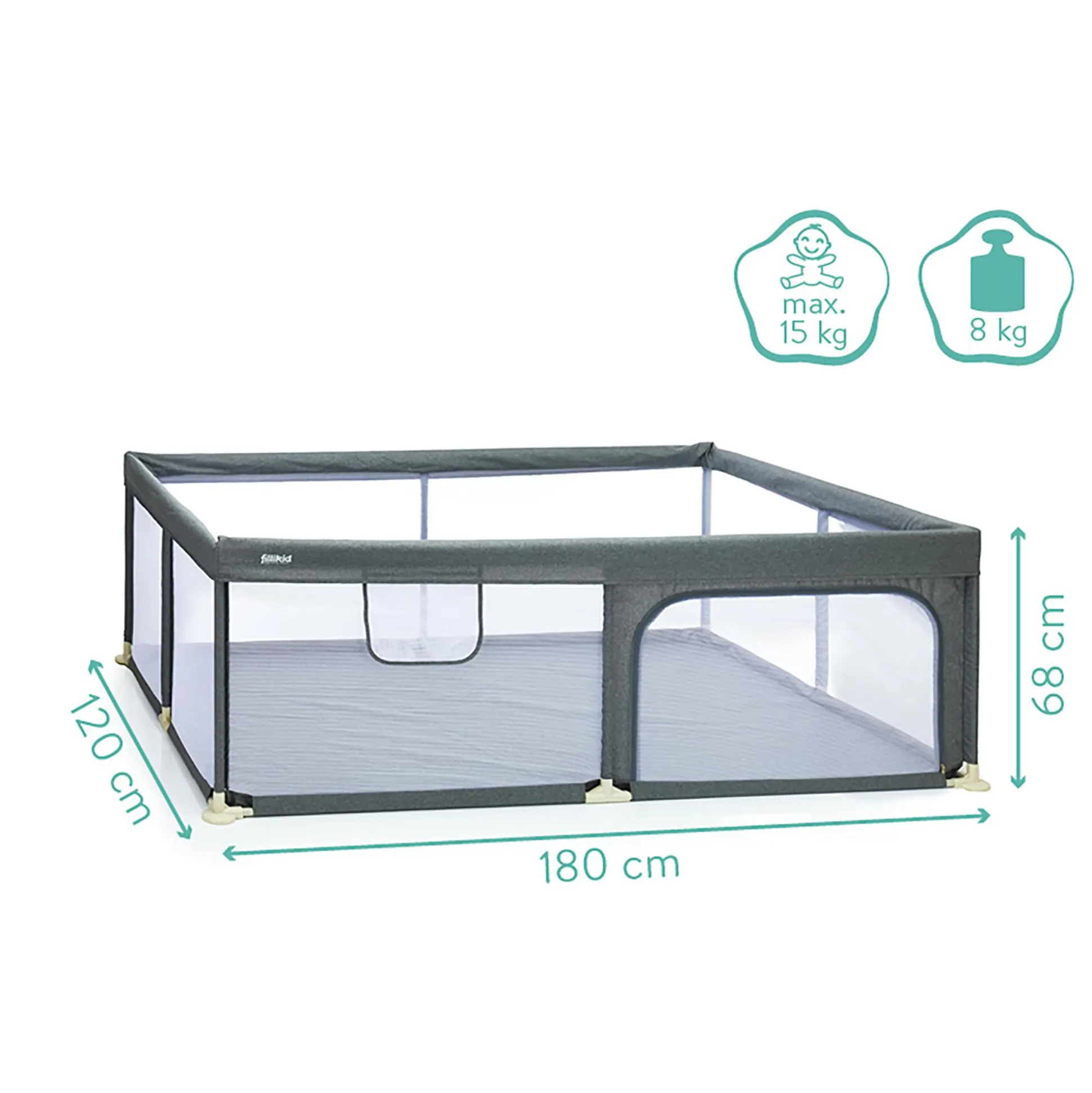 | Color | Grau, grauMaße ca. 180 x 120 x 68 cmVorteilebietet viel Platz zum SpielenSelbstständigkeit wird durch seitlichen Einstieg gefördertsolide Konstruktion für mehr SicherheitMaterialBezug: 100 % Melange |