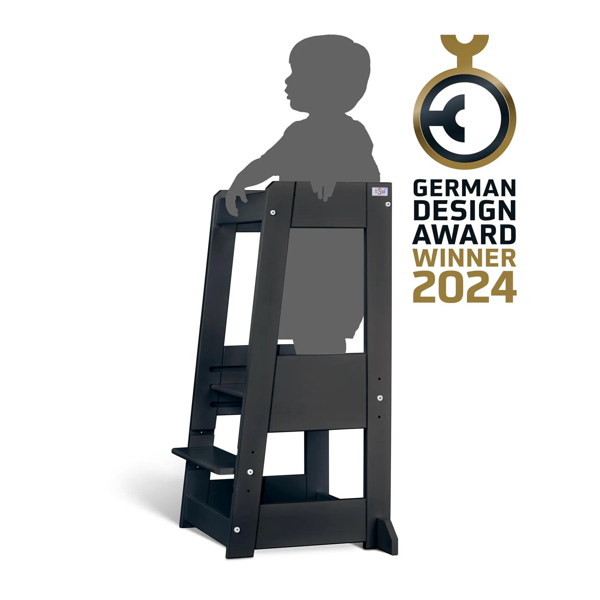 Der Lernturm Felix von tiSsi® ist ein spannender Entdecker-Turm, der mit deinem Kind mitwächst. So können schon die Kleinsten auf Augenhöhe mit an der Küchenarbeitsplatte stehen und beim Kochen helfen.