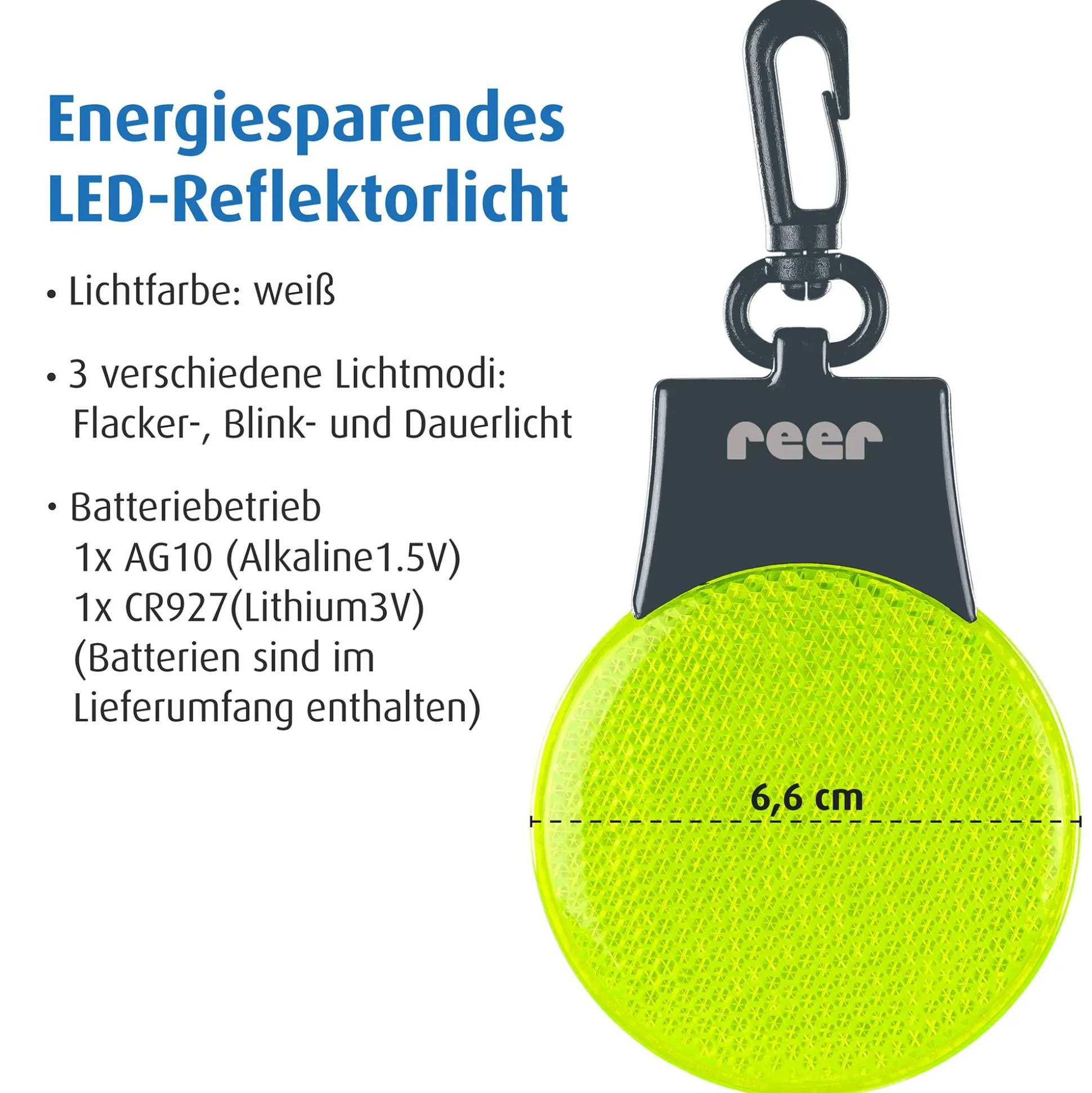 Das Light & Go Sicherheitslicht von reer macht dich und dein Kind auch bei schlechten Sichtverhältnissen für andere Verkehrsteilnehmer besser sichtbar.