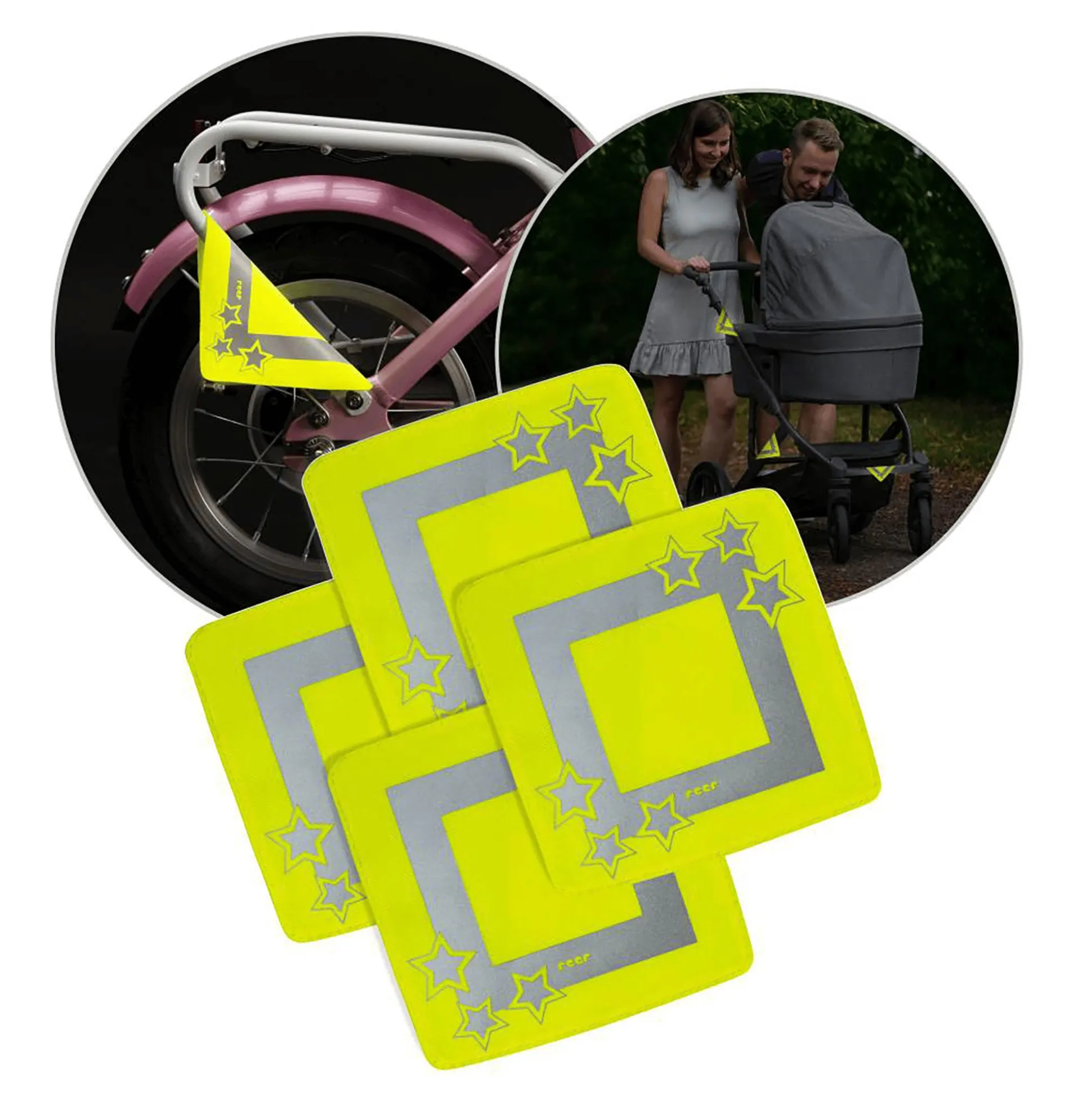 Bei schlechten Sichtverhältnissen wie Dämmerung, Dunkelheit, Nebel oder Regen sind Fußgänger oftmals erst sehr spät zu erkennen. Das 4er Reflektoren-Set LightReflex von reer sorgt für mehr Sicherheit unterwegs, denn die LightReflex Reflektoren in leuchtender Signalfarbe machen dich und deinen Nachwuchs selbst bei schwierigen Sichtbedingungen für Autofahrer sowie für andere Verkehrsteilnehmer gut sichtbar – das fluoreszierende Gelb in Verbindung mit reflektierenden Elementen spiegelt einen Großteil des einfallenden Lichts wider und maximiert so eure eigene Sichtbarkeit.