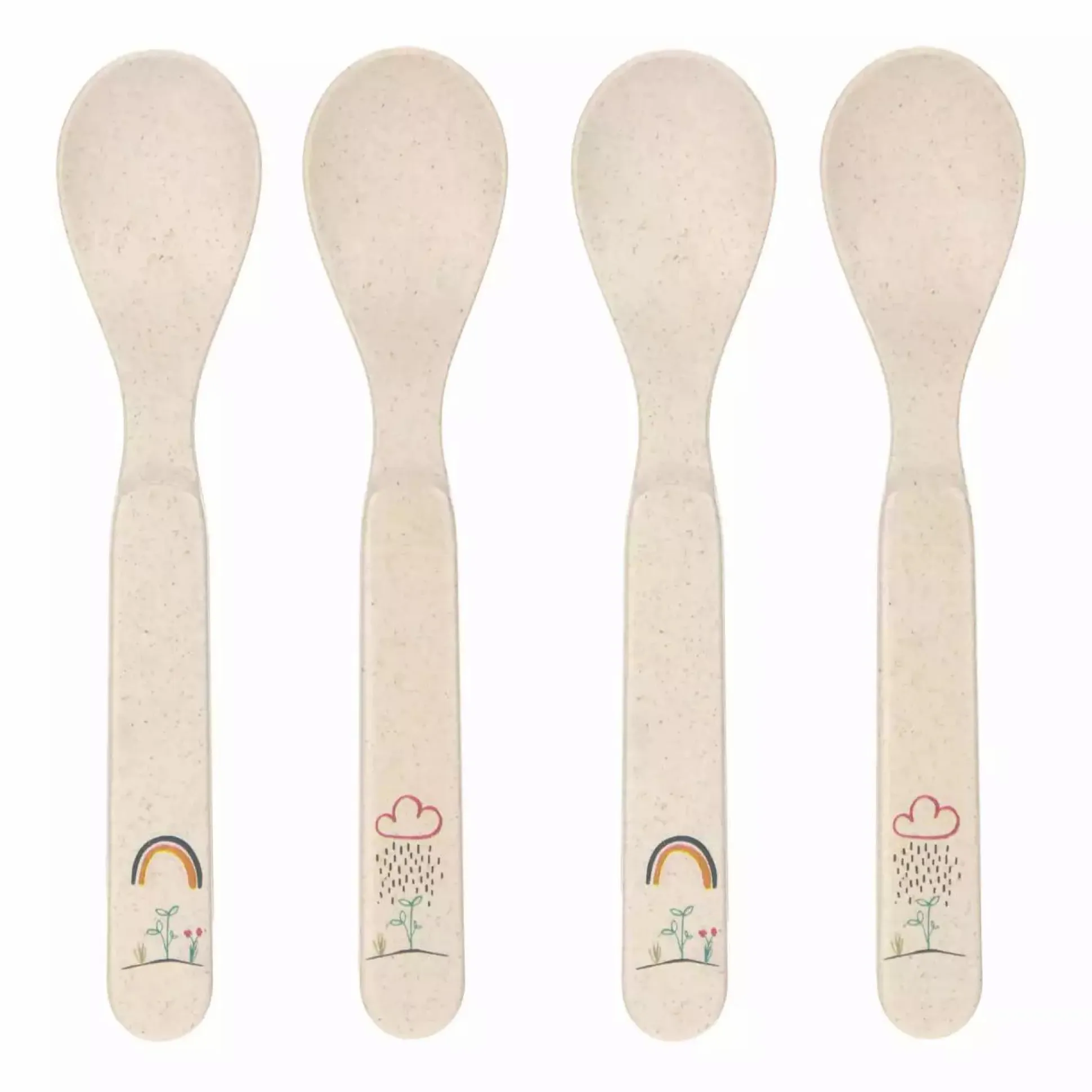 Die vier Löffel sind BPA-frei, leicht sowie mikrowellen- und spülmaschinengeeignet. Niedliche Blumen und süße Wolken verzieren die Griffe der Löffel. Die Löffel animieren deinen kleinen Schatz zum eigenständigen Essen und sind die perfekte Ergänzung zum restlichen Geschirr aus der Garden Explorer Kollektion.