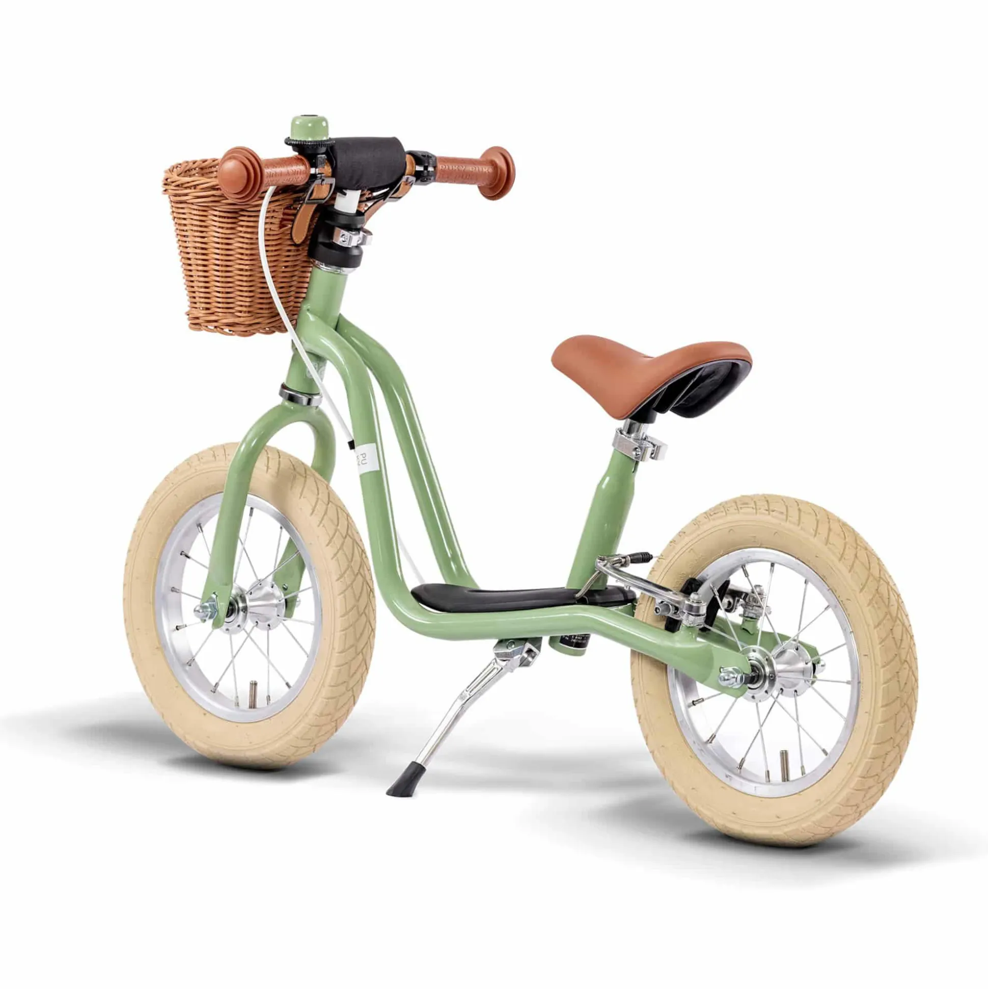 Kugelgelagerte Speichenräder mit 12,5 Zoll Luftbereifung sehen nicht nur cool aus, sondern bieten auch optimale Rolleigenschaften auf jeglichen Untergründen. Serienmäßig ist das Retro Laufrad von PUKY mit einer farblich passenden Drehring-Glocke, einem Seitenständer sowie dem PUKY Lenkerpolster ausgestattet und für Kinder ab 3 Jahren und einer Größe von 95 cm geeignet.