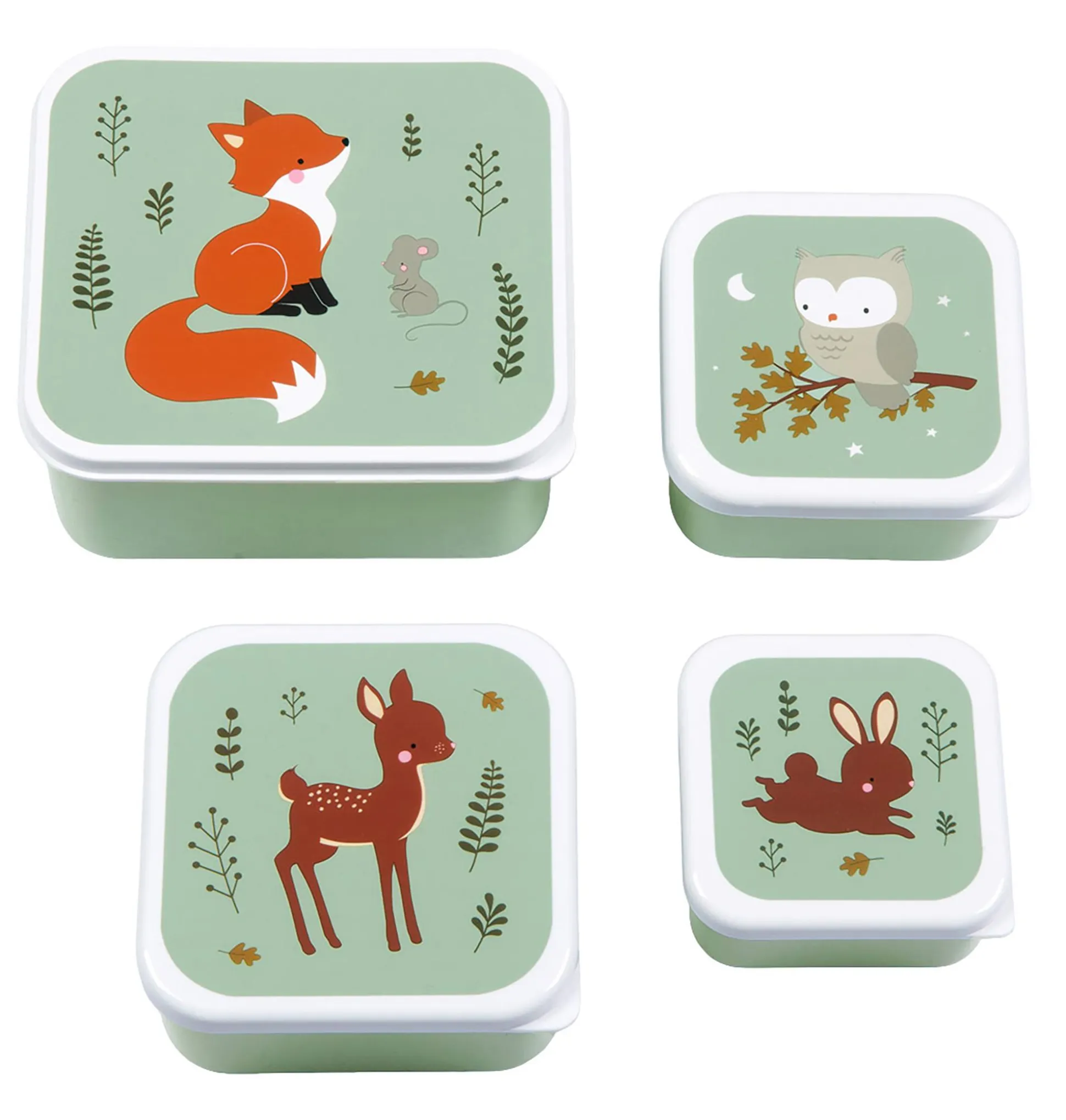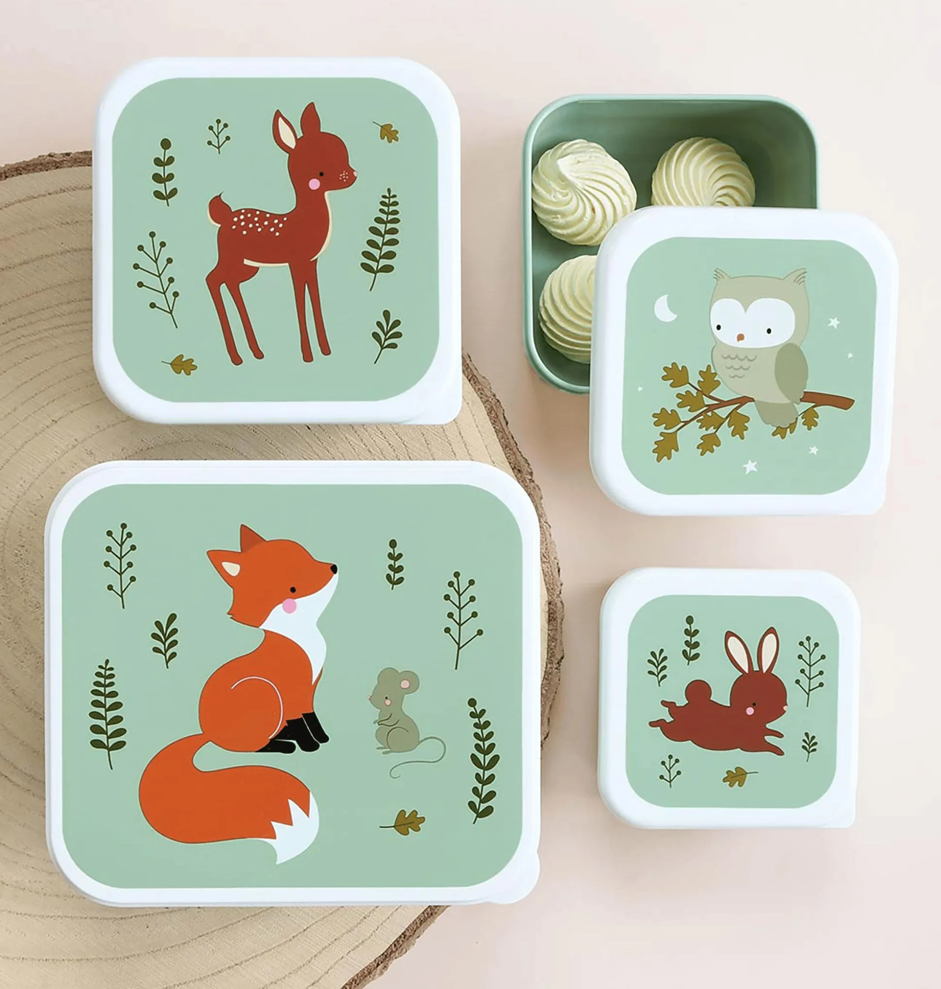 Das Luchbox 4er-Set Waldfreunde von Little Lovely Company beinhaltet vier Lunch- und Snackboxen in verschiedenen Größen. Sie sind ineinander stapelbar und lassen sich so effizient verstauen.