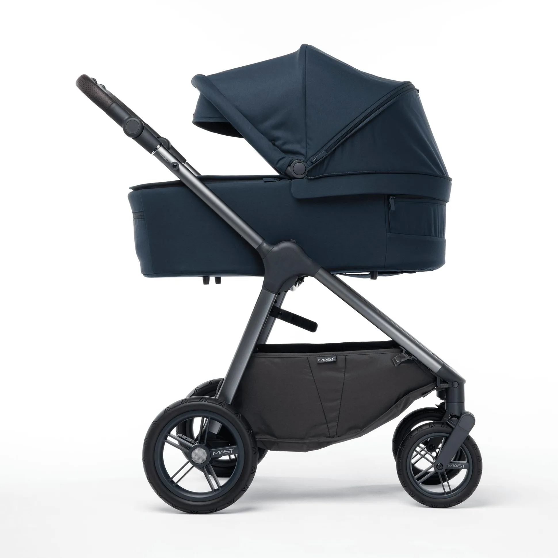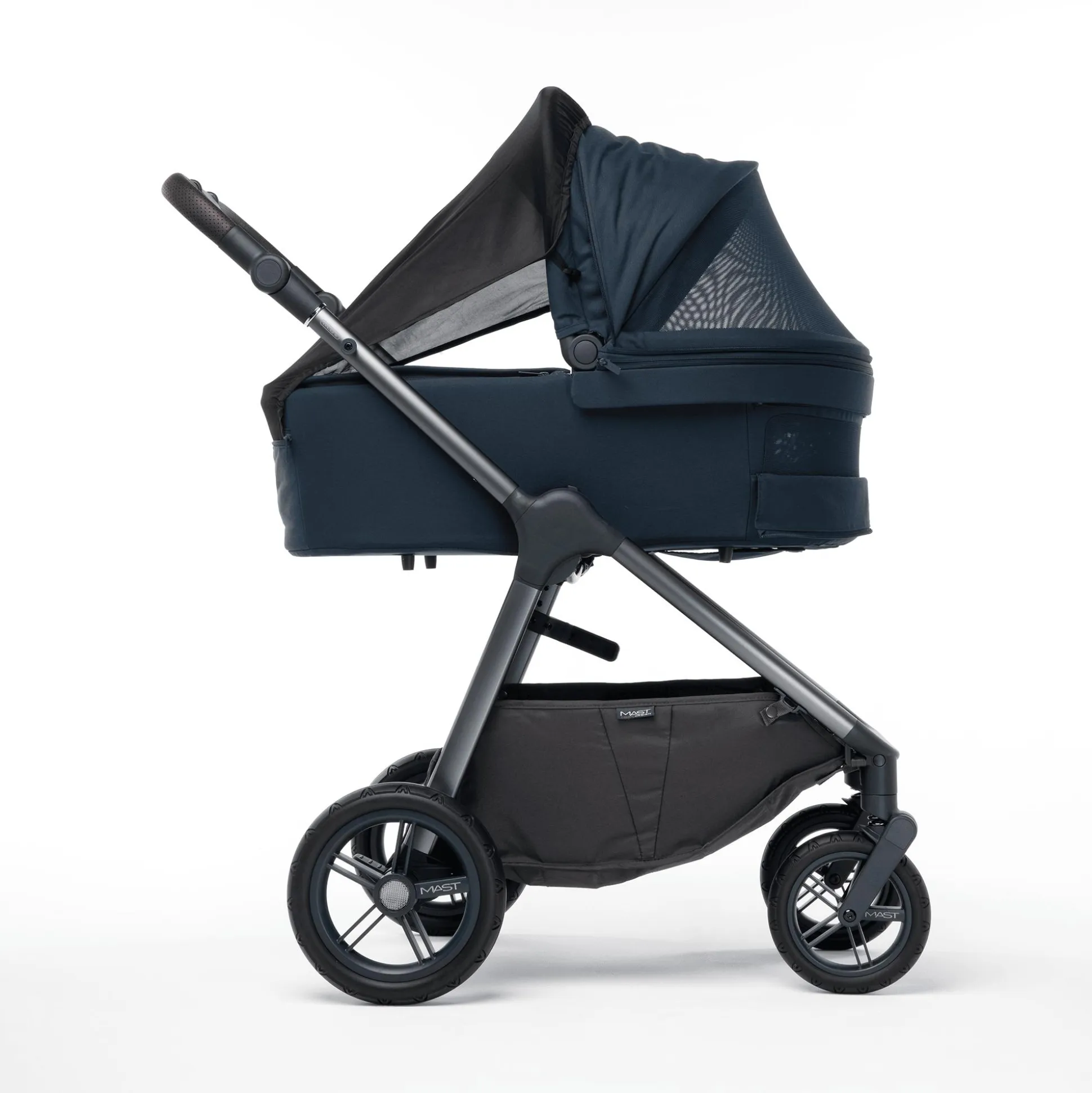 Der M.5x im Design Blueberry von Mast erfüllt all eure Wünsche. Ein Allrounder mit Allradfederung, Babywanne, Sitz und einer Vielzahl an Funktionen, die euch jeden Ausflug erleichtern.