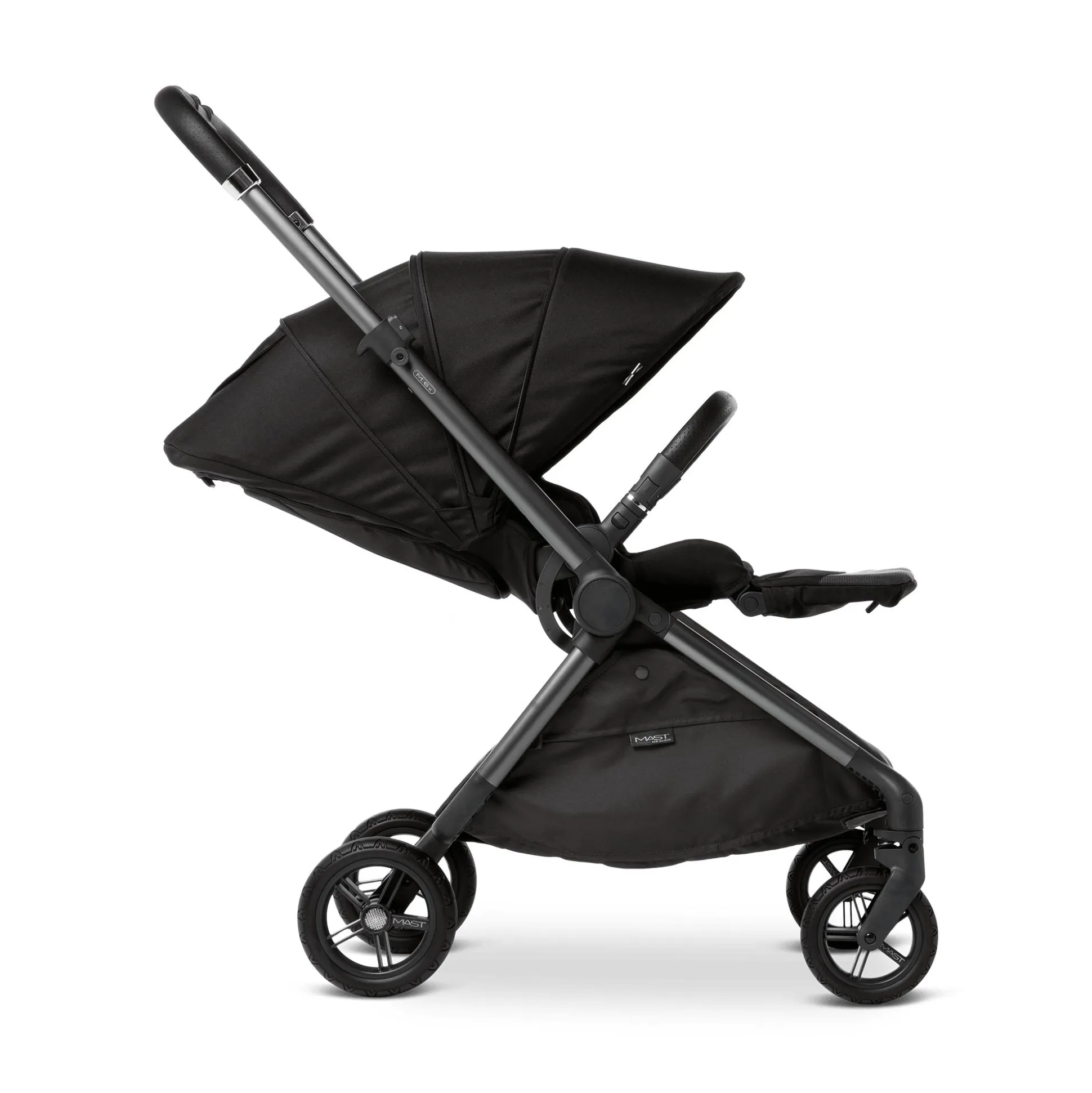 Der Kinderwagen M.6x von Mast ist der perfekte Begleiter für deinen Alltag – funktional, stylisch und besonders kompakt. Geeignet ab der Geburt (in Kombination mit der separat erhältlichen M.6x Bassinet), bietet dieser Kinderwagen alles, was dein Baby für einen sicheren und geborgenen Start ins Leben braucht. Der M.6x überzeugt mit einer großzügigen, weich gepolsterten Sitzfläche, einem 360 Grad drehbaren Sicherheitsbügel und einem UPF 50+ Sonnendach. So fühlt sich dein Kind zu jeder Zeit geschützt und wohl – ob bei einem Spaziergang durch die Stadt oder bei Ausflügen in die Natur. Der integrierte, geräumige Einkaufskorb mit Smart Pocket bietet dir zusätzlichen Stauraum für unterwegs.