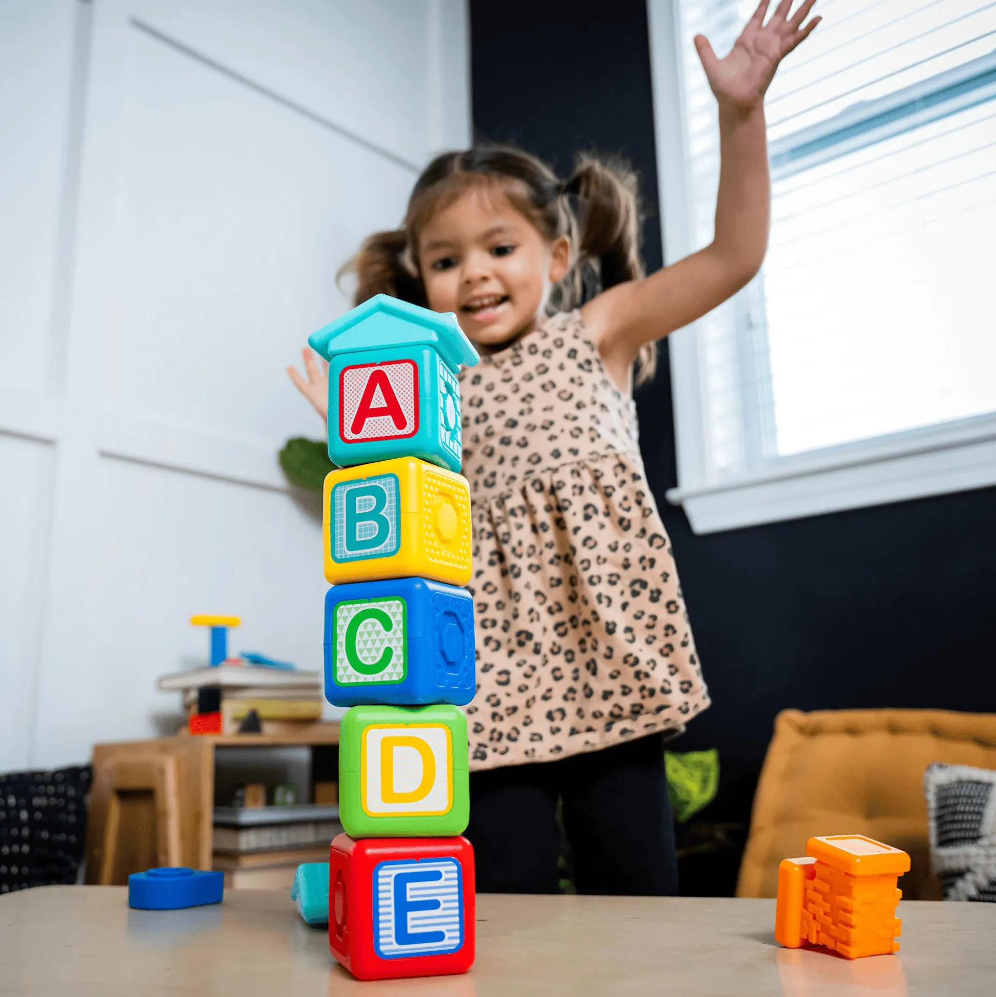 Die magnetischen Aktivitätsblöcke Bridge & Learn von Baby Einstein sind optimal für kleine Bastler und Entdecker, denn die 15 Teile können nach Belieben zusammengesteckt werden. Die versteckten, sicheren Magnete in den Blöcken sorgen dafür, dass sie auf scheinbar magische Art und Weise zusammenhalten und dein Nachwuchs damit Häuser, Türme oder auch Brücken bauen kann. Mithilfe der niedlichen Buchstaben und Tiermotive auf den Blöcken werden neben der Feinmotorik auch das Verständnis und die Sinne deines Kindes gefördert.