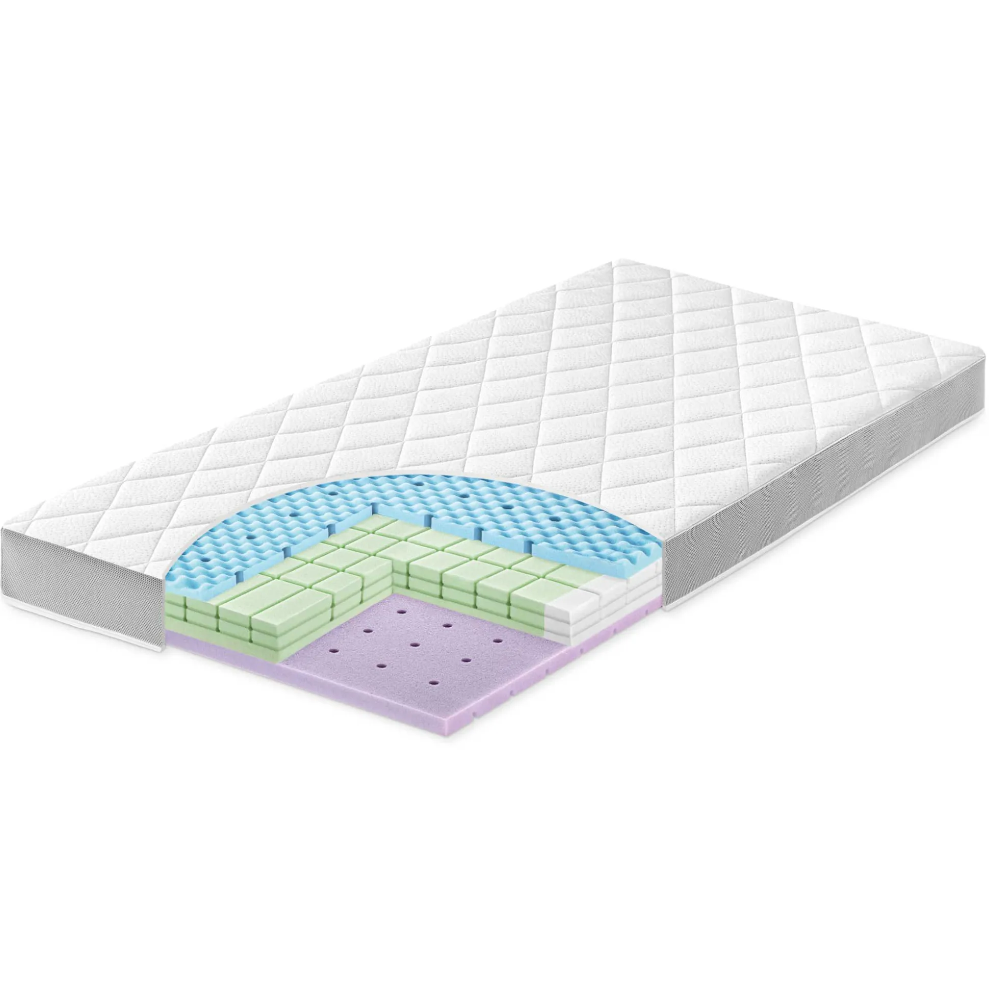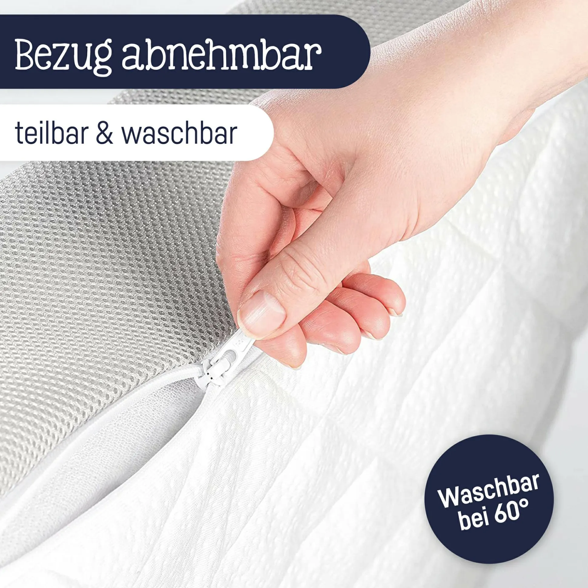 Mit der Baby- und Kleinkindseite ist die Matratze länger nutzbar. Der abehm- und teilbare Bezug kann einfach bei 60 Grad gewaschen werden.