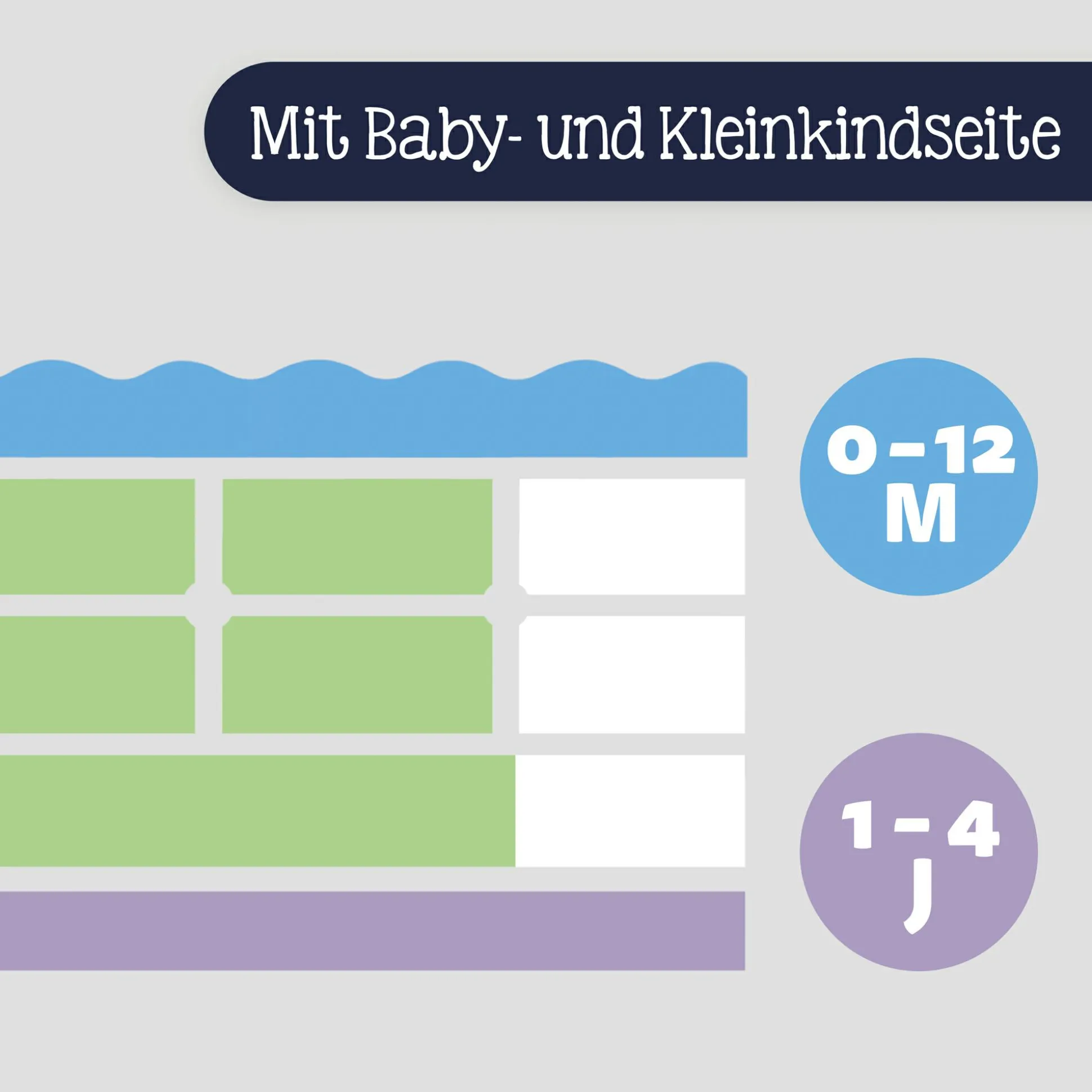- mit Babyseite (0-12 Monate) und Kleinkindseite (1-4 Jahre)