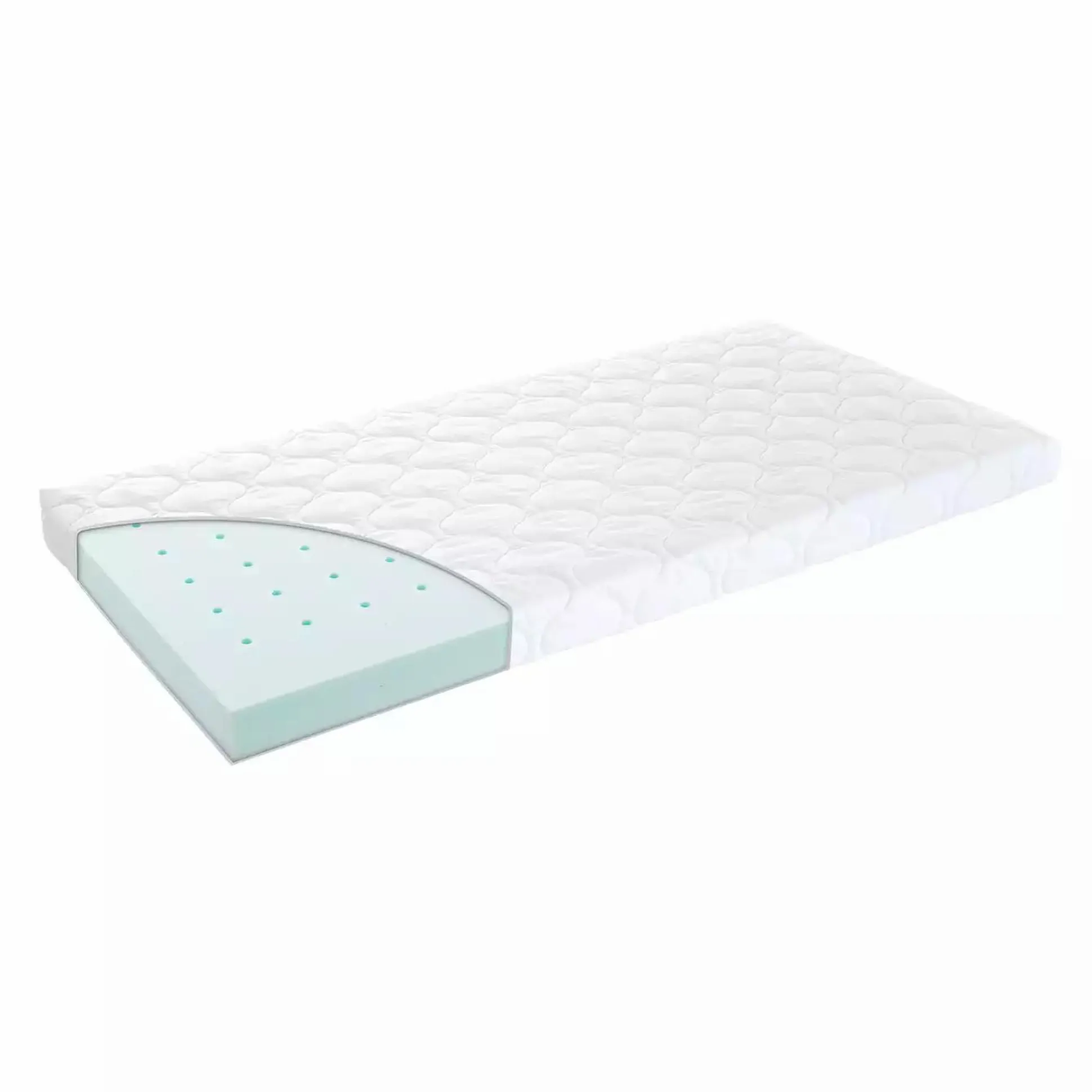 Der Matratzenbezug besteht aus 100% weicher Baumwolle und sorgt für eine kuschelige und anschmiegsame Liegefläche. Außerdem ist der Bezug zusätzlich mit Wash-Vlies versteppt und luftdurchlässig. Der Matratzenkern besitzt einen punktelastischen Kaltschaum für einen guten Liegekomfort und vertikale Belüftungskanäle für eine gute Luftzirkulation.